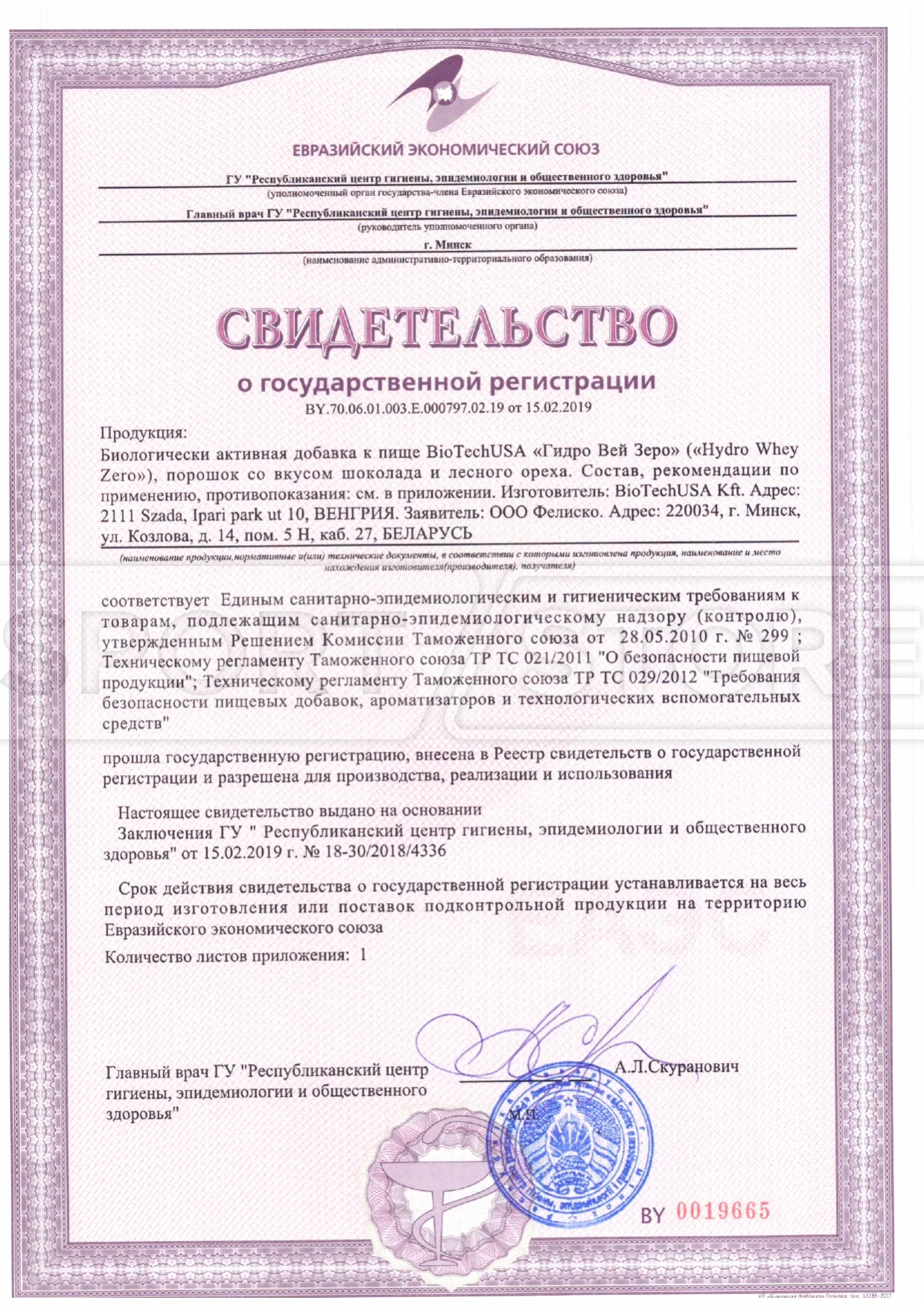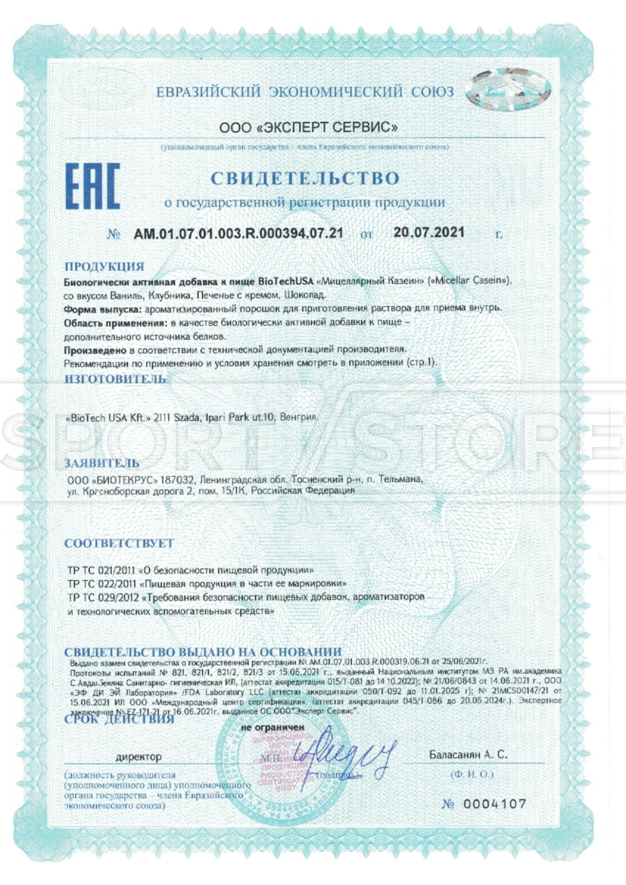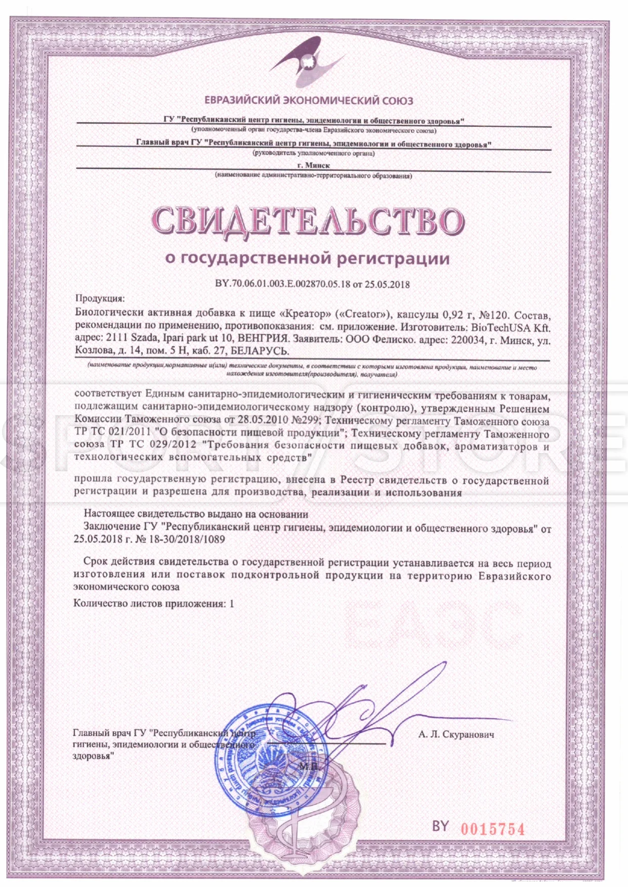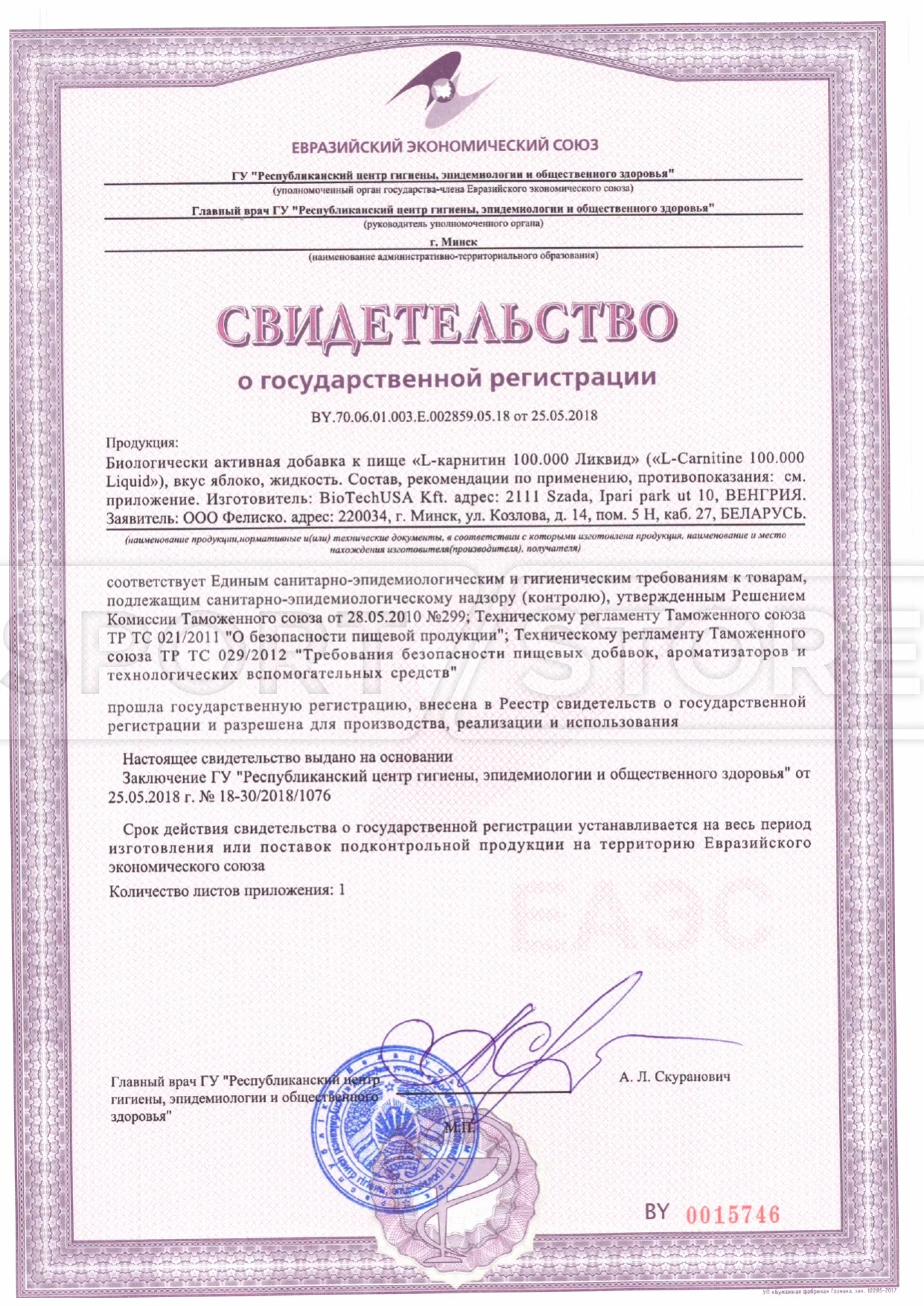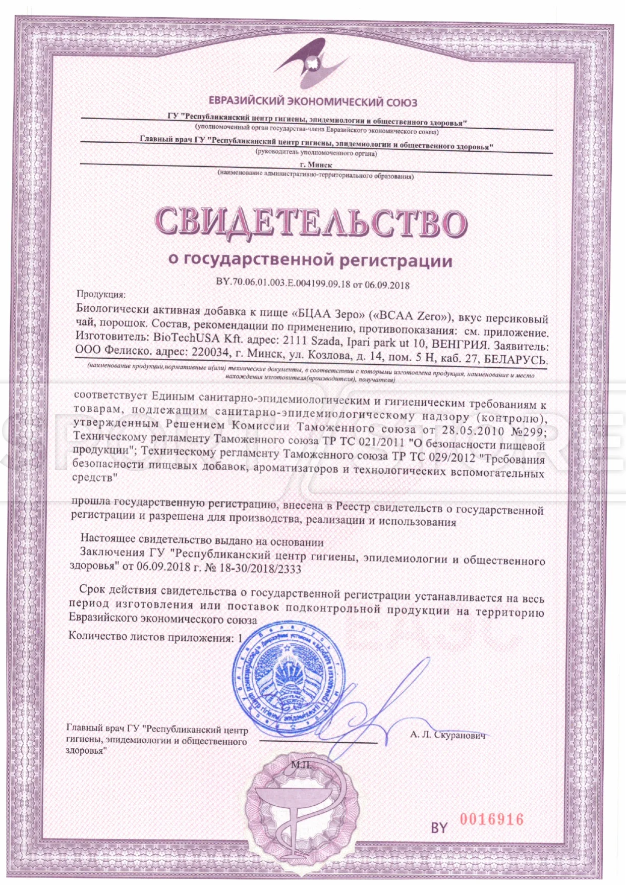 На продукцию BioTechUSA оформлены следующие документы: