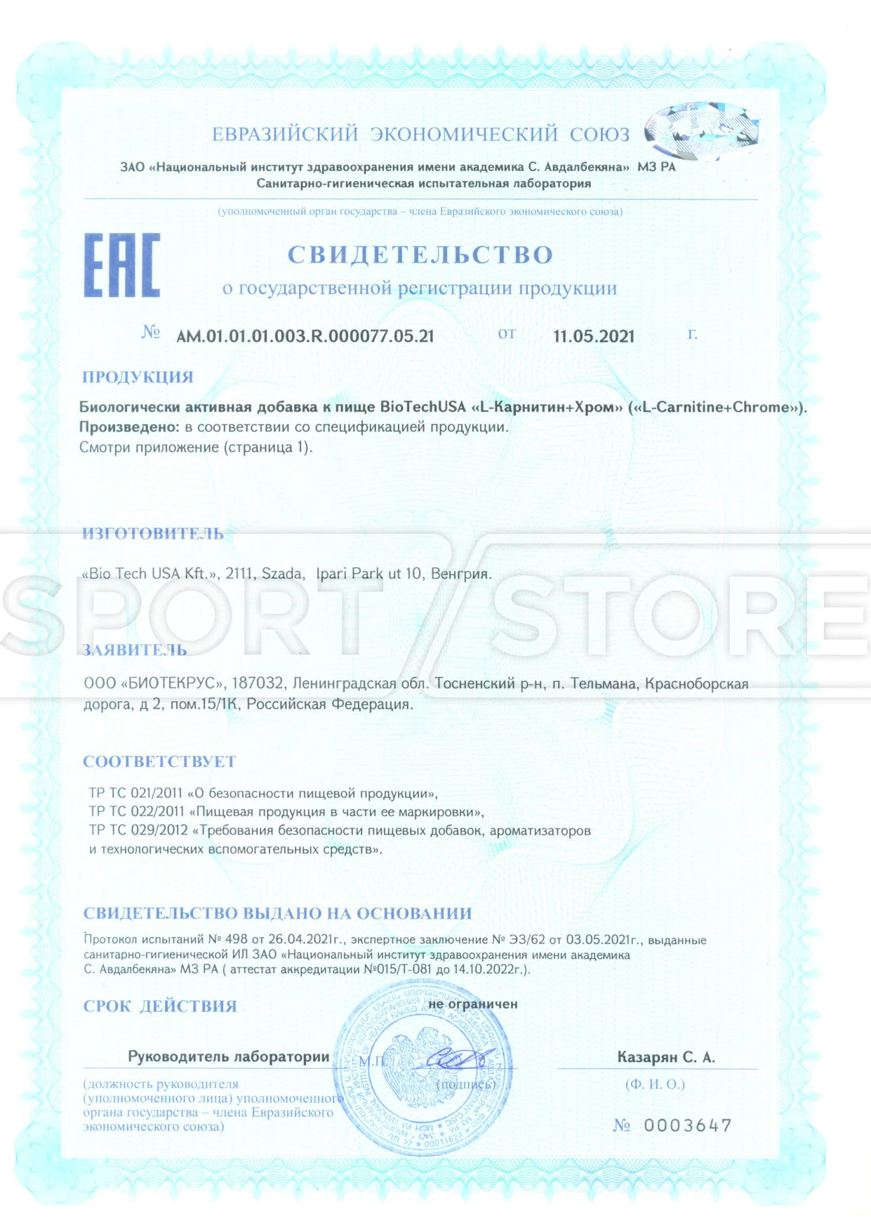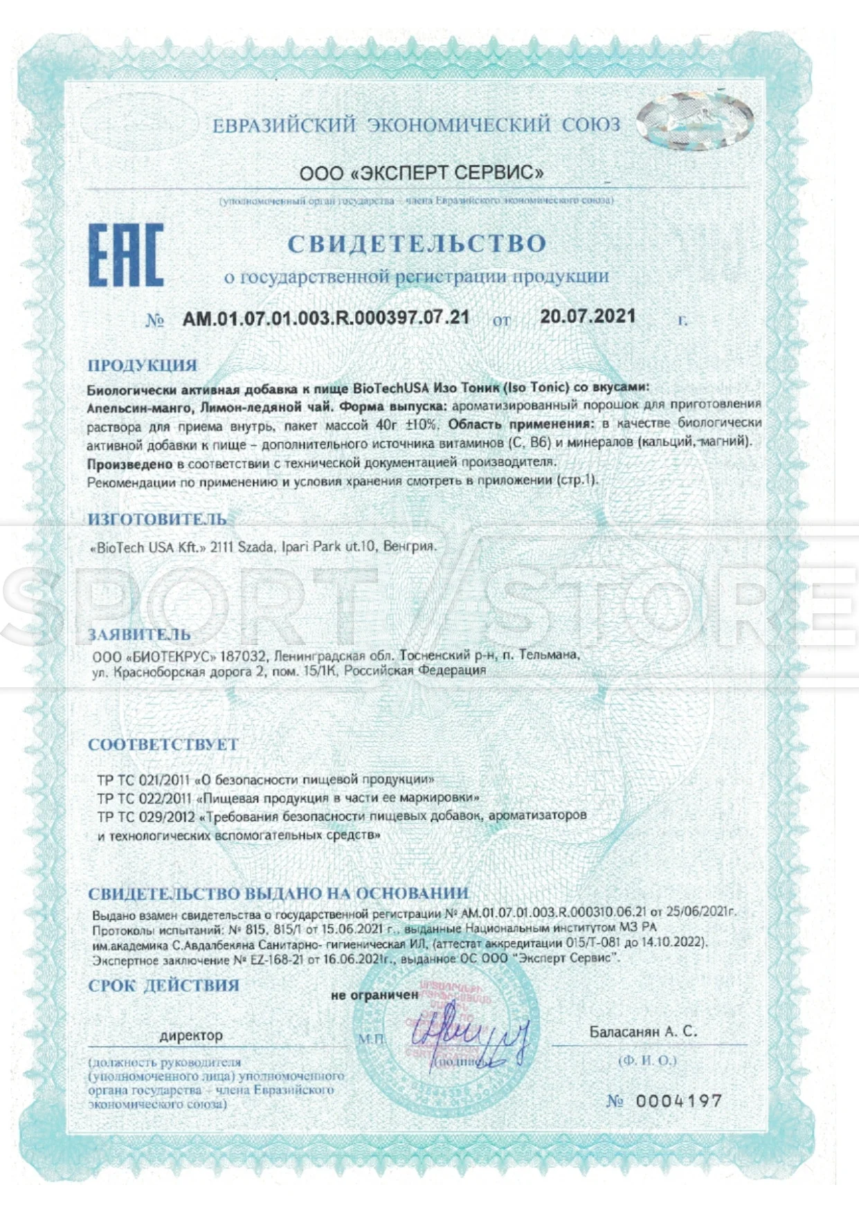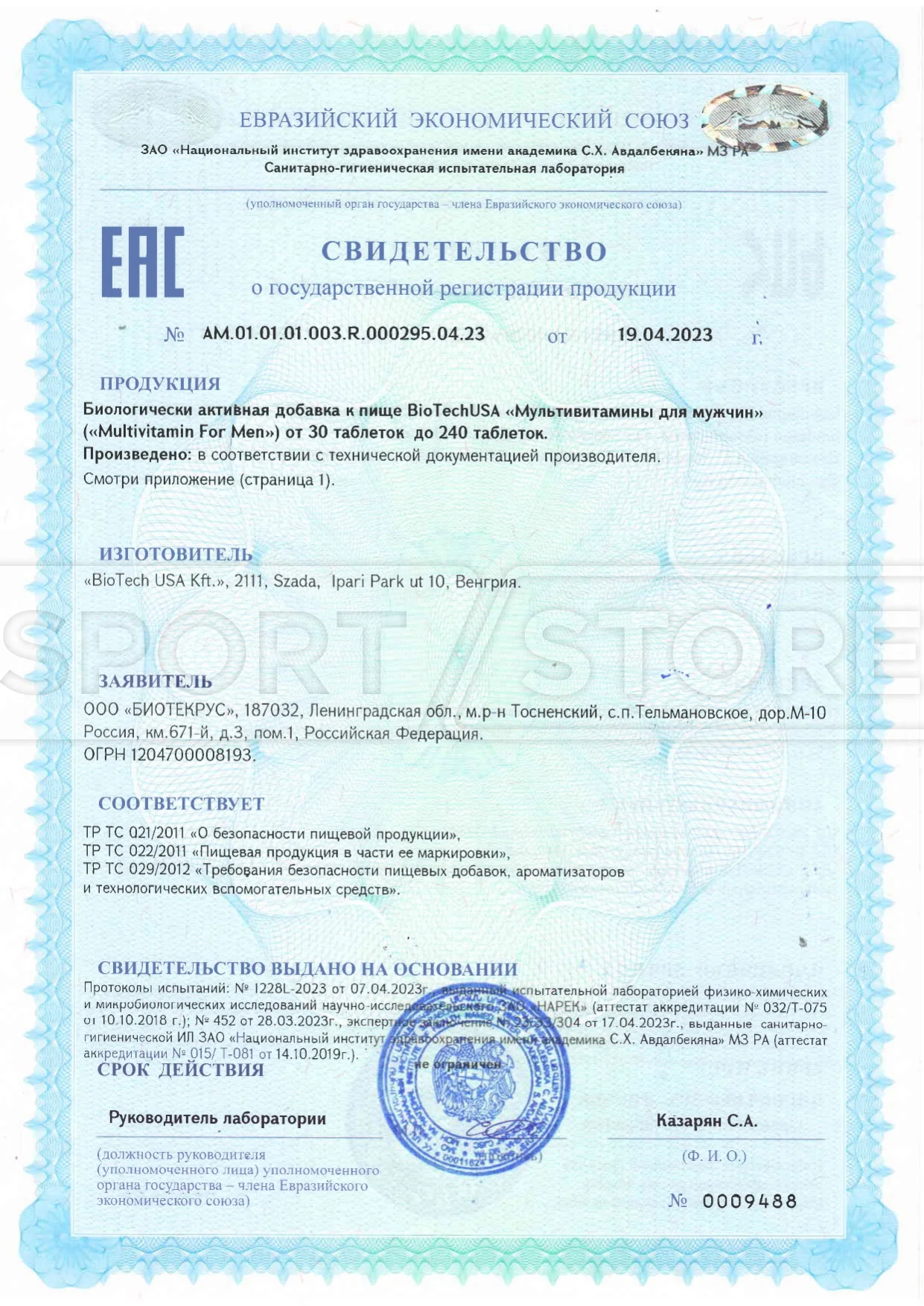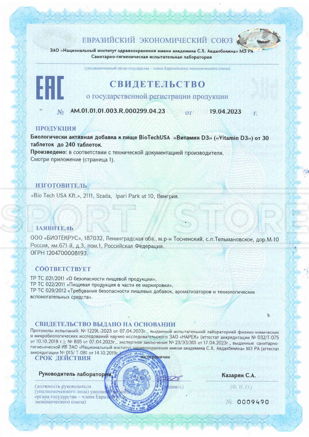 На продукцию BioTechUSA оформлены следующие документы: