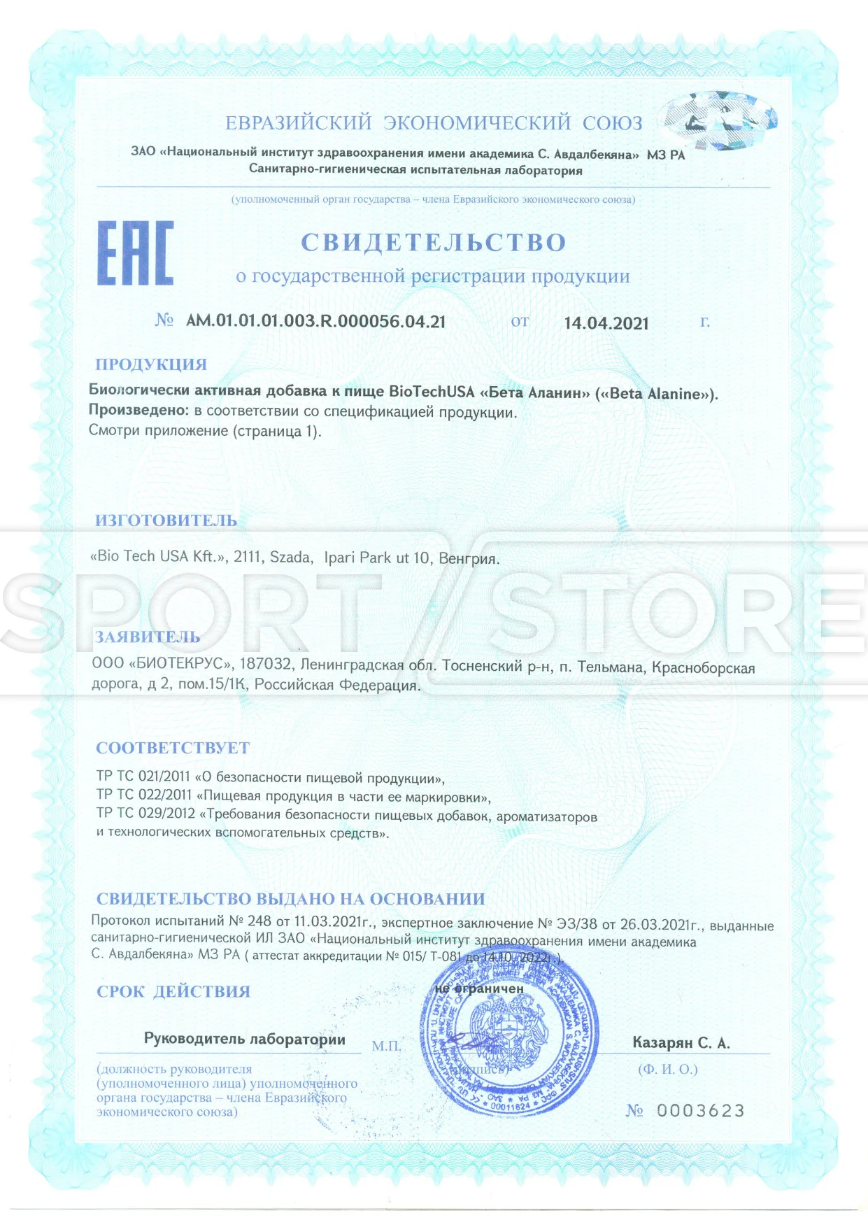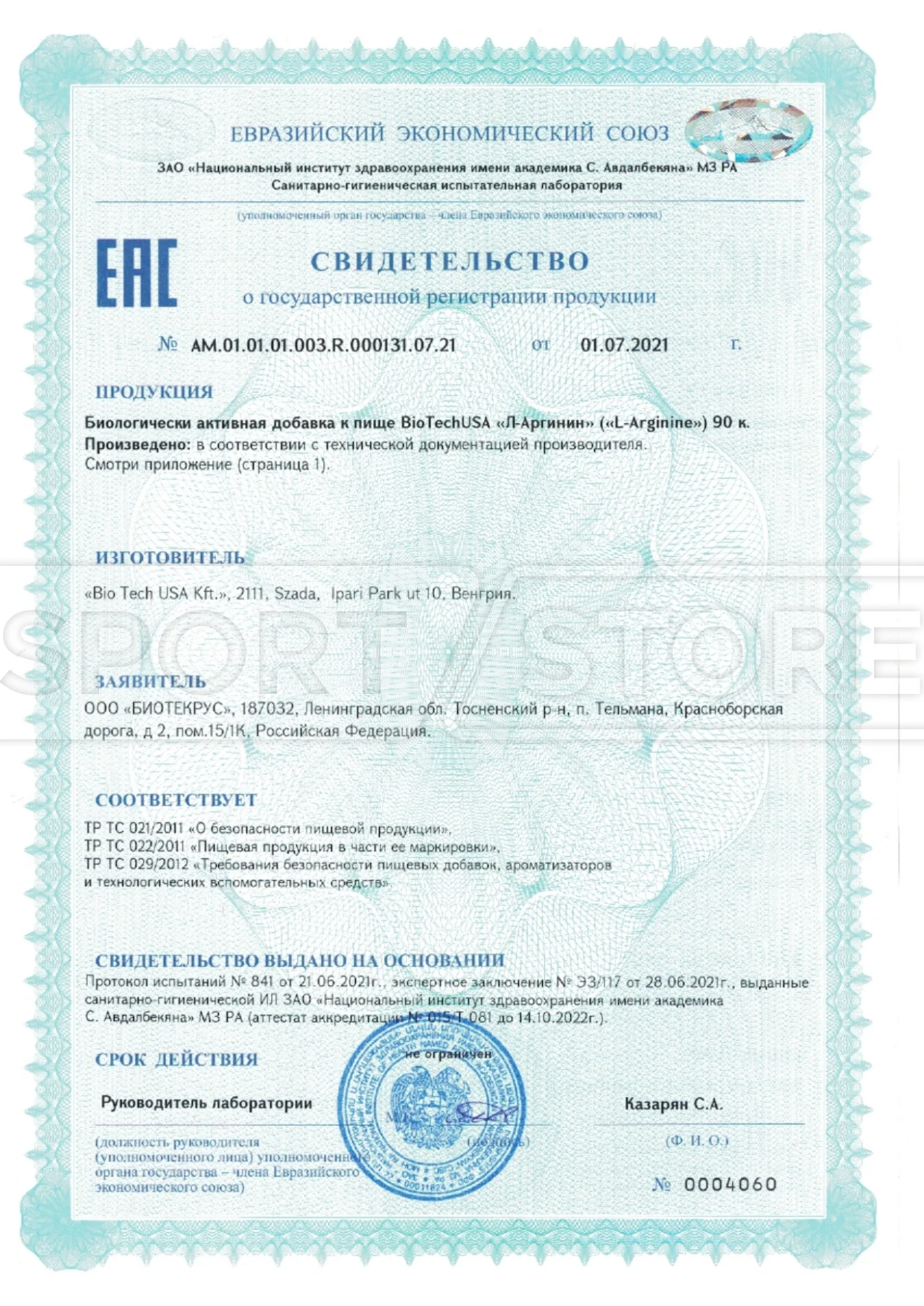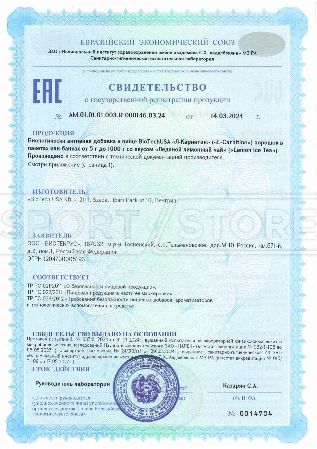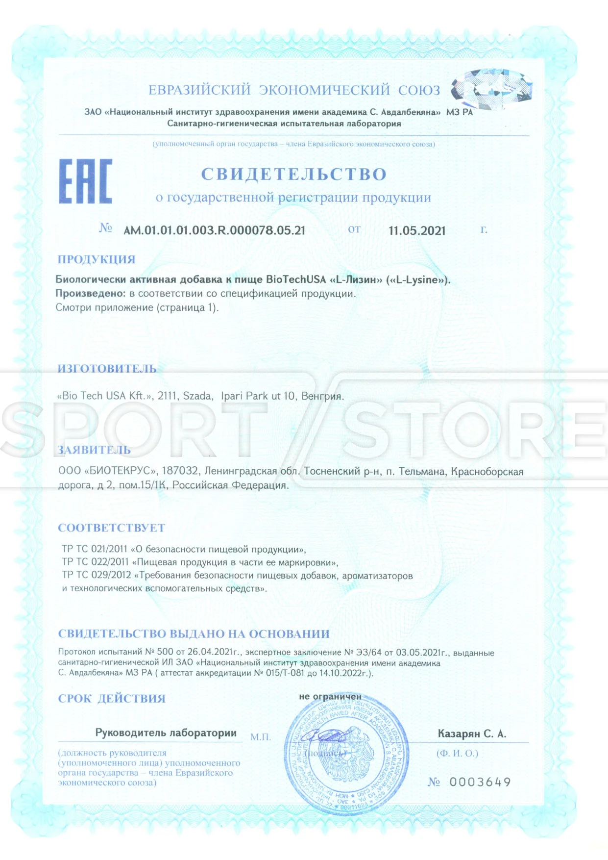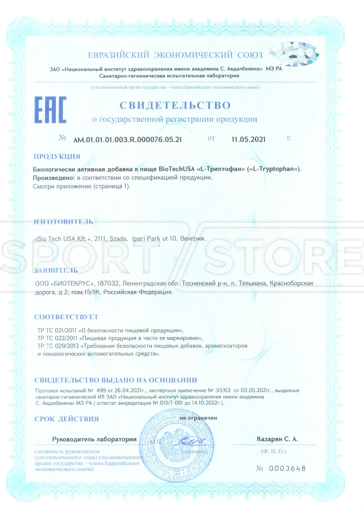 На продукцию BioTechUSA оформлены следующие документы: