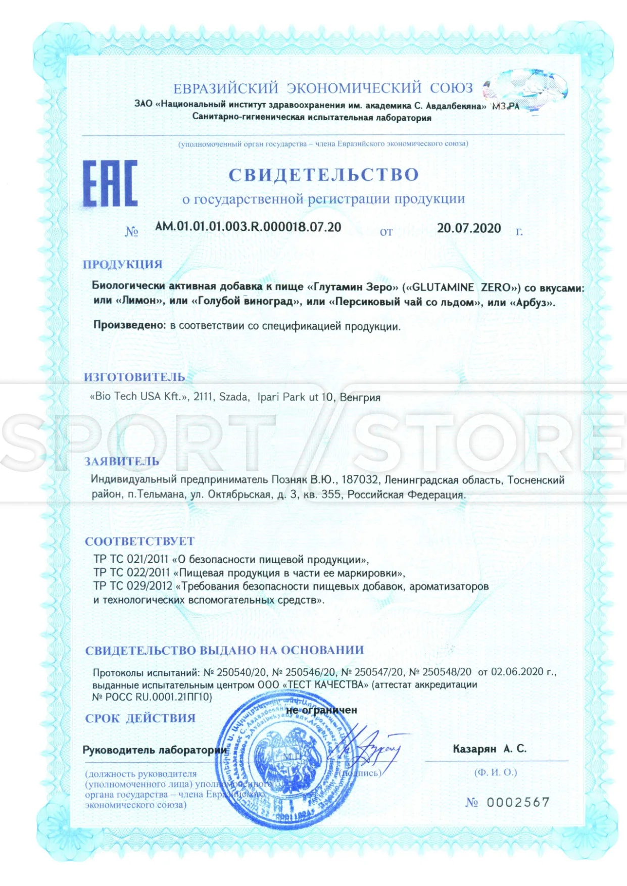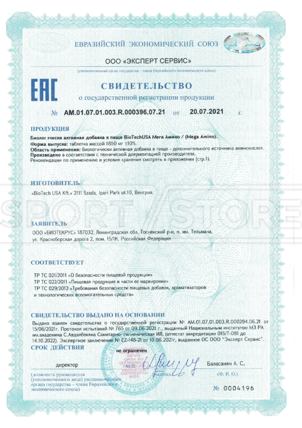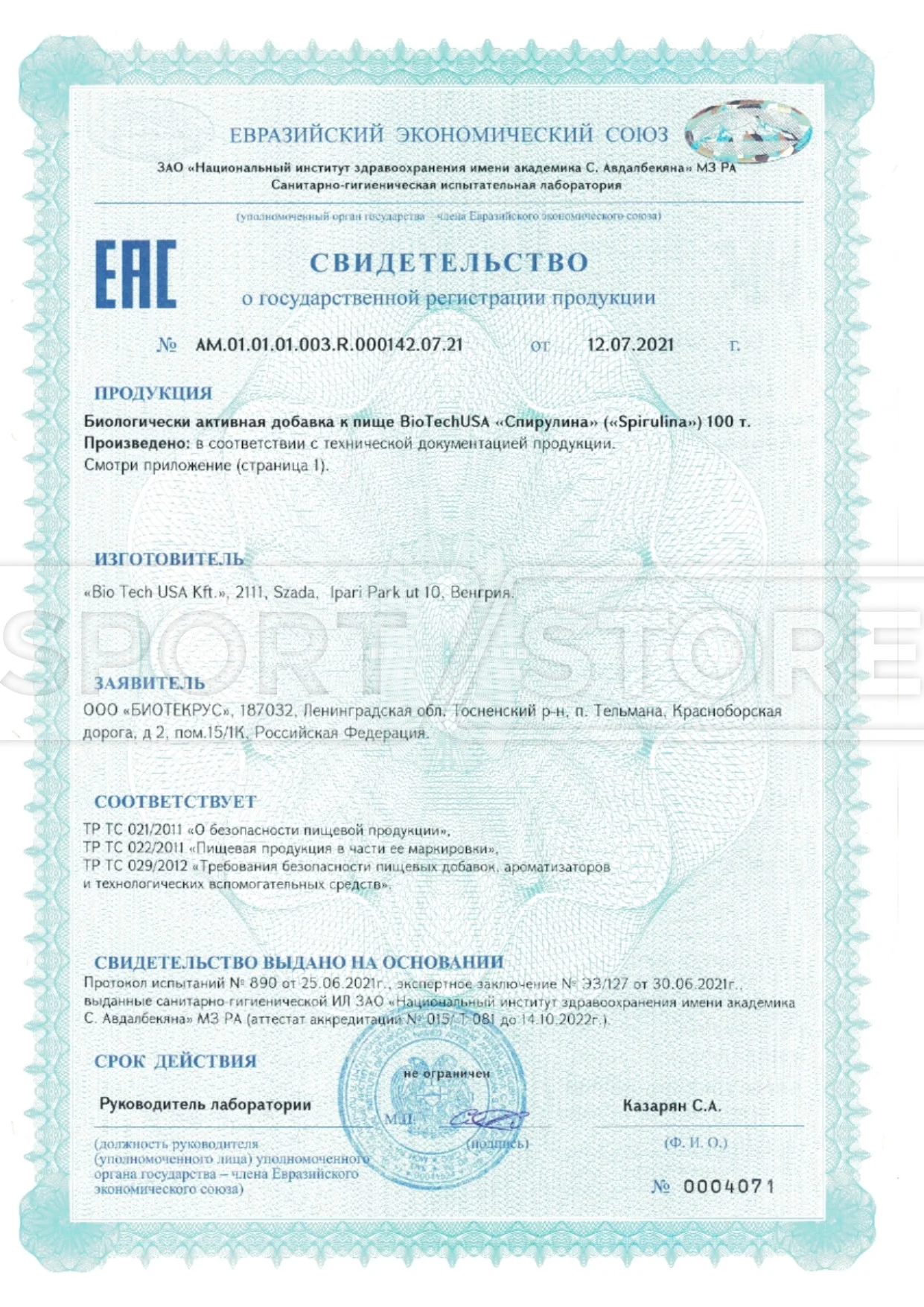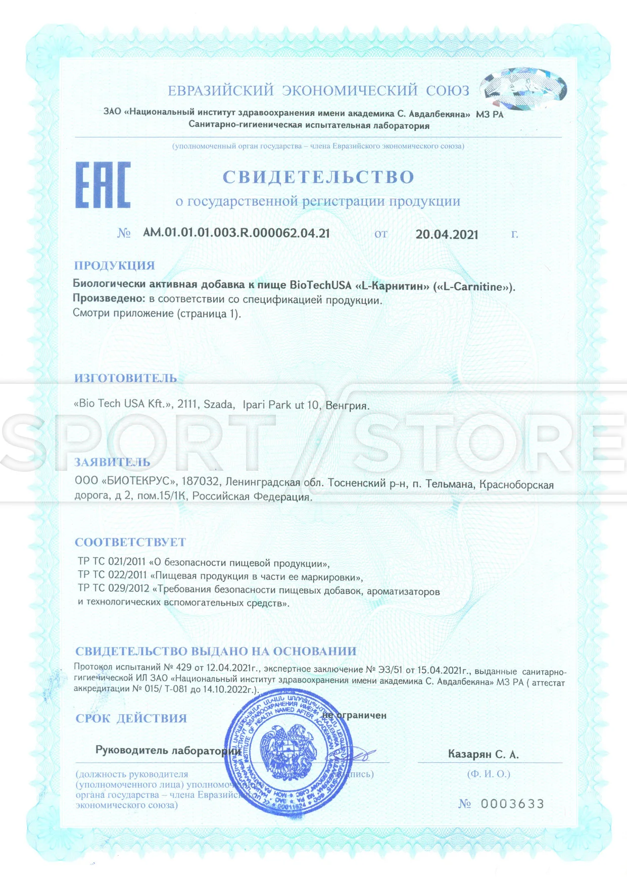 На продукцию BioTechUSA оформлены следующие документы: