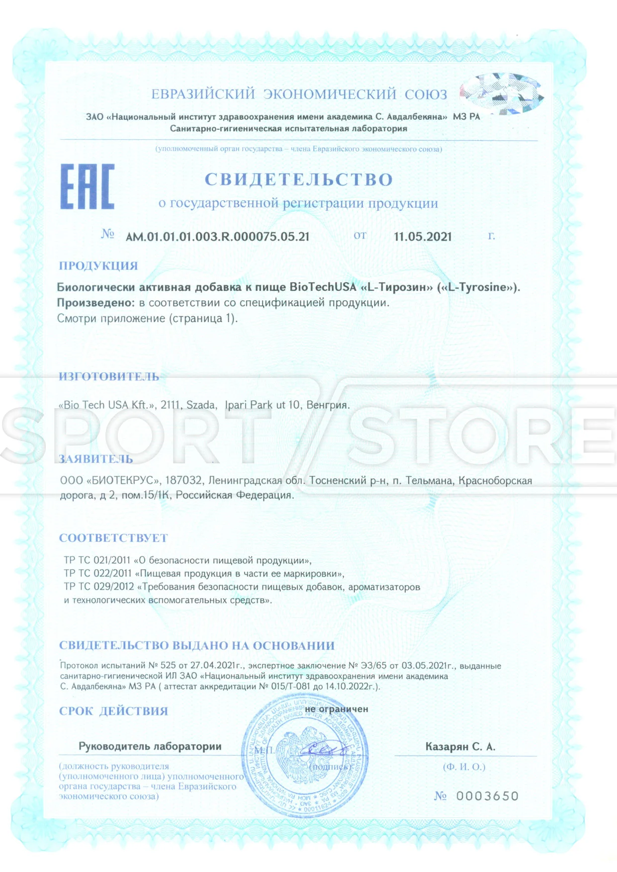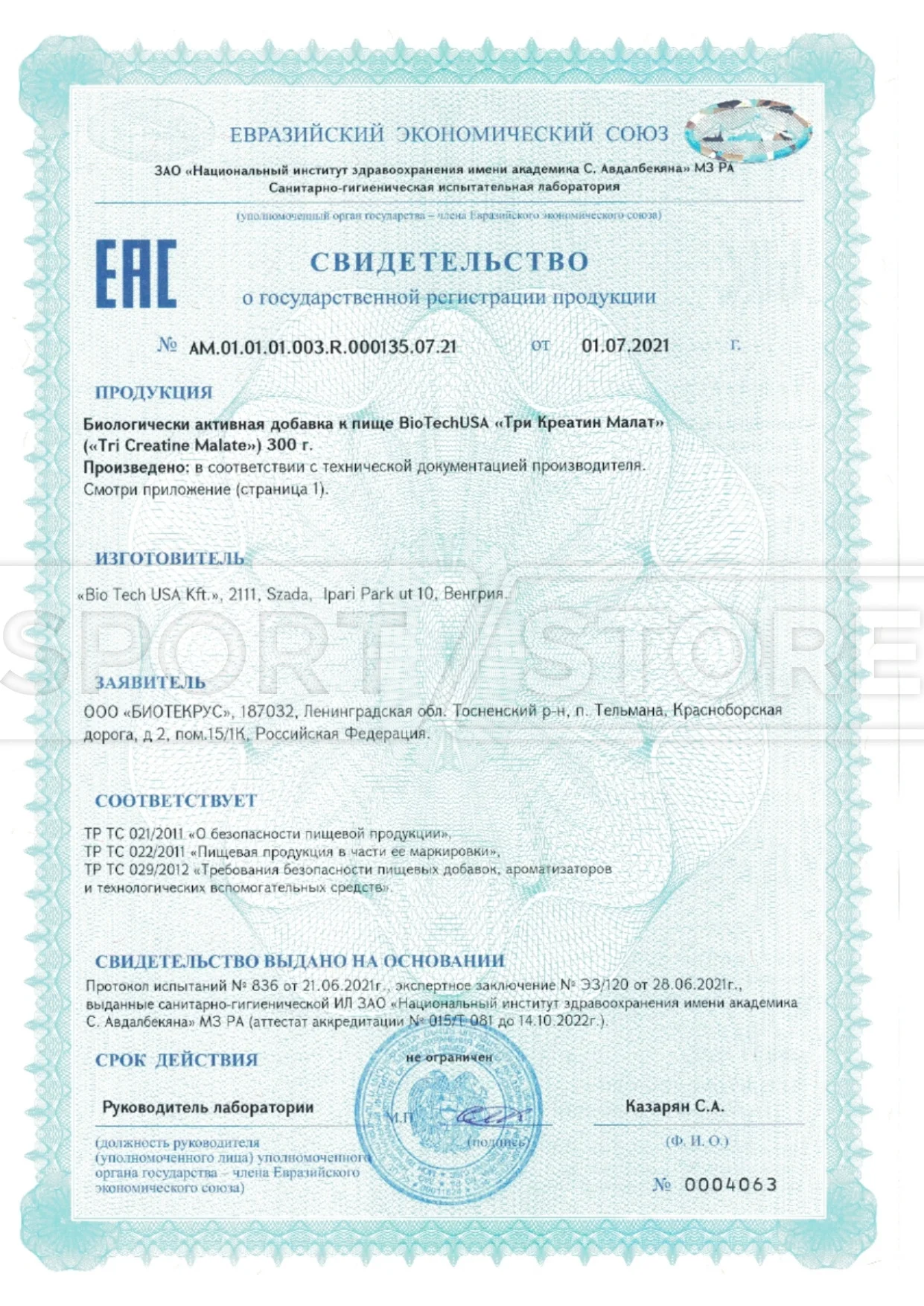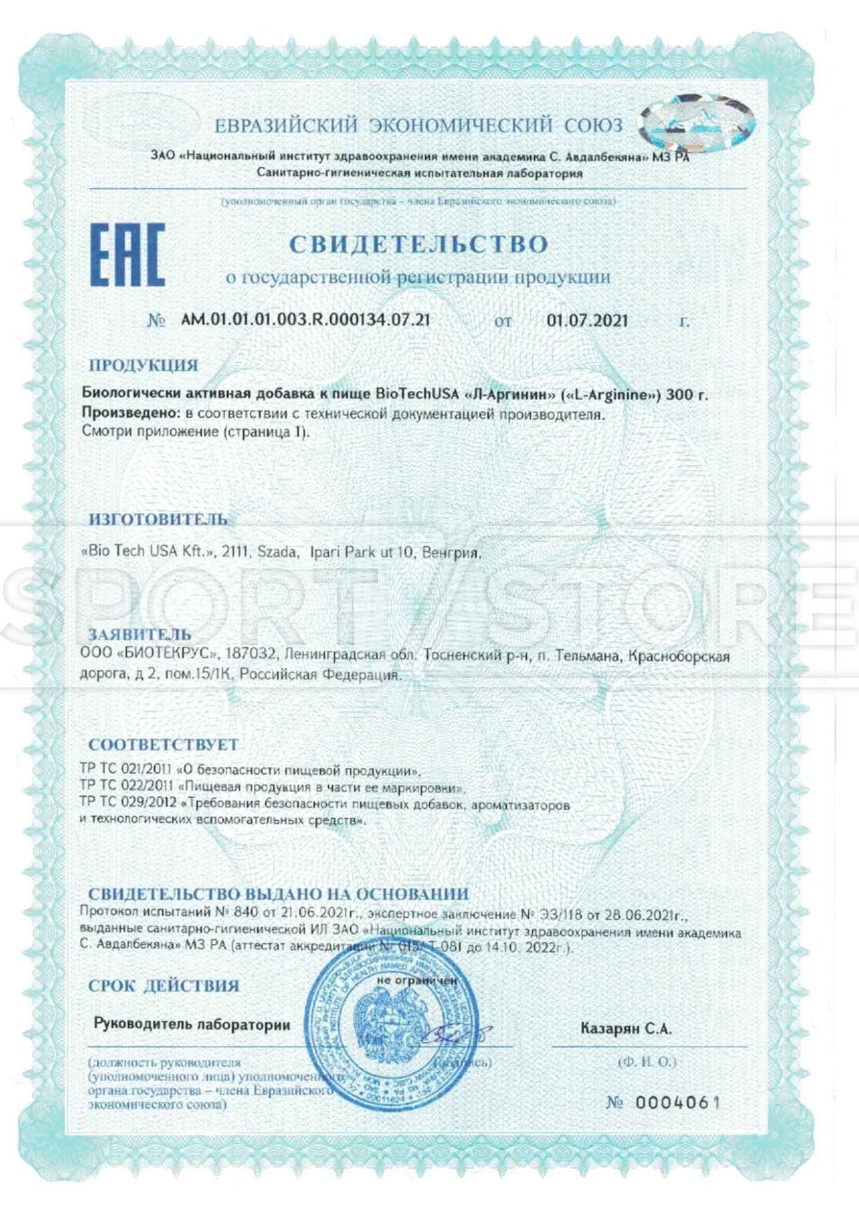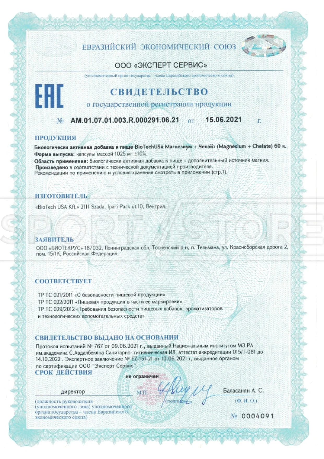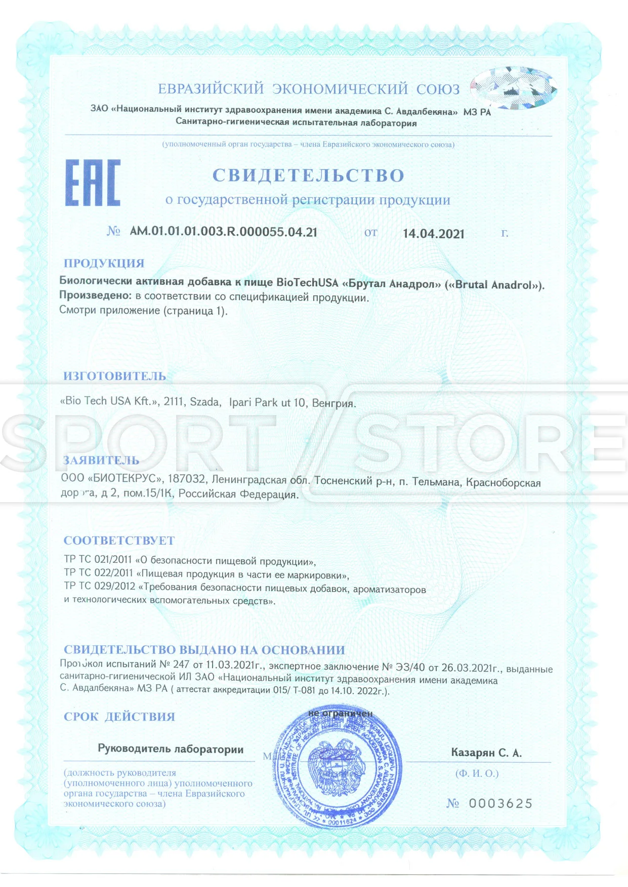 На продукцию BioTechUSA оформлены следующие документы: