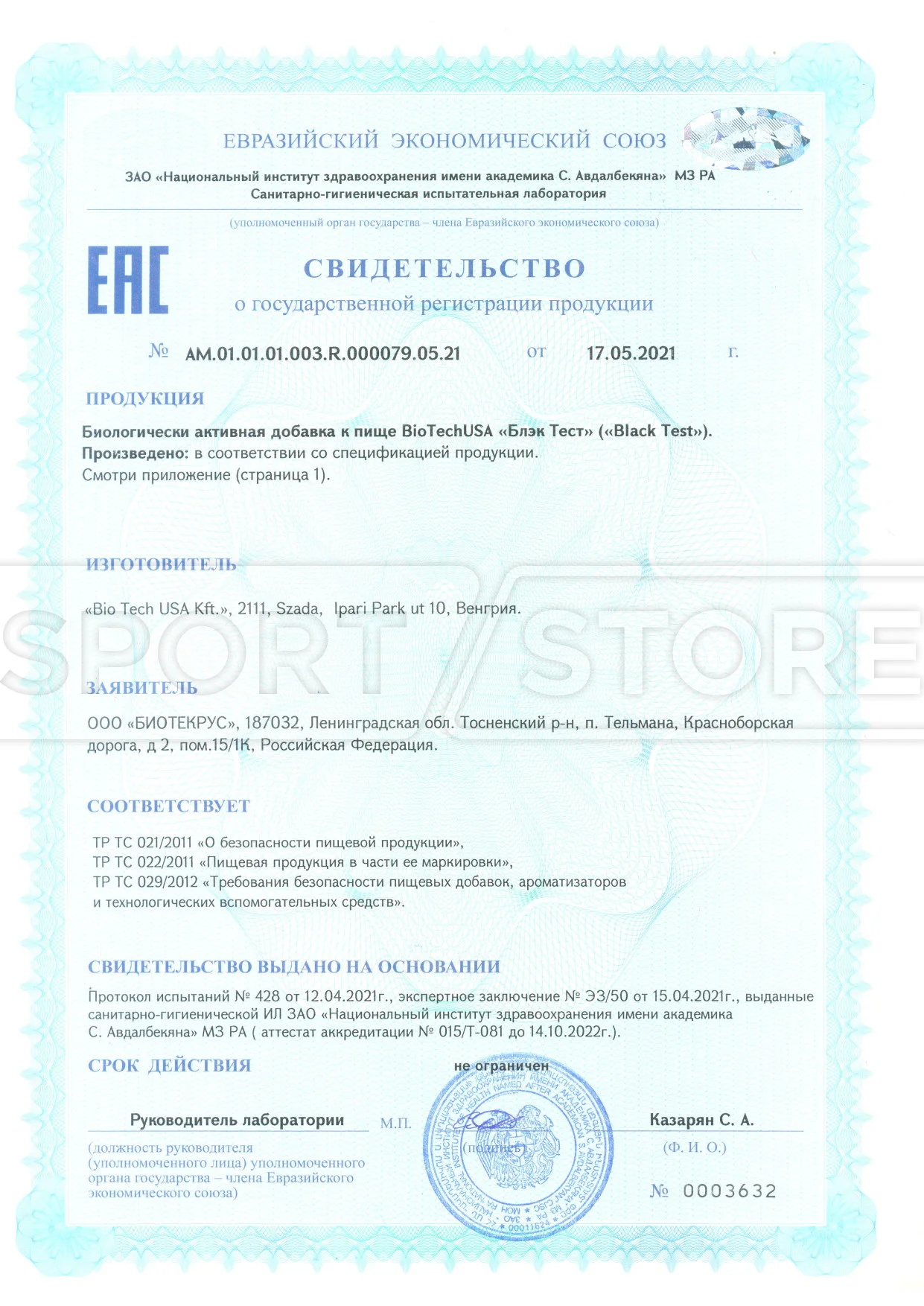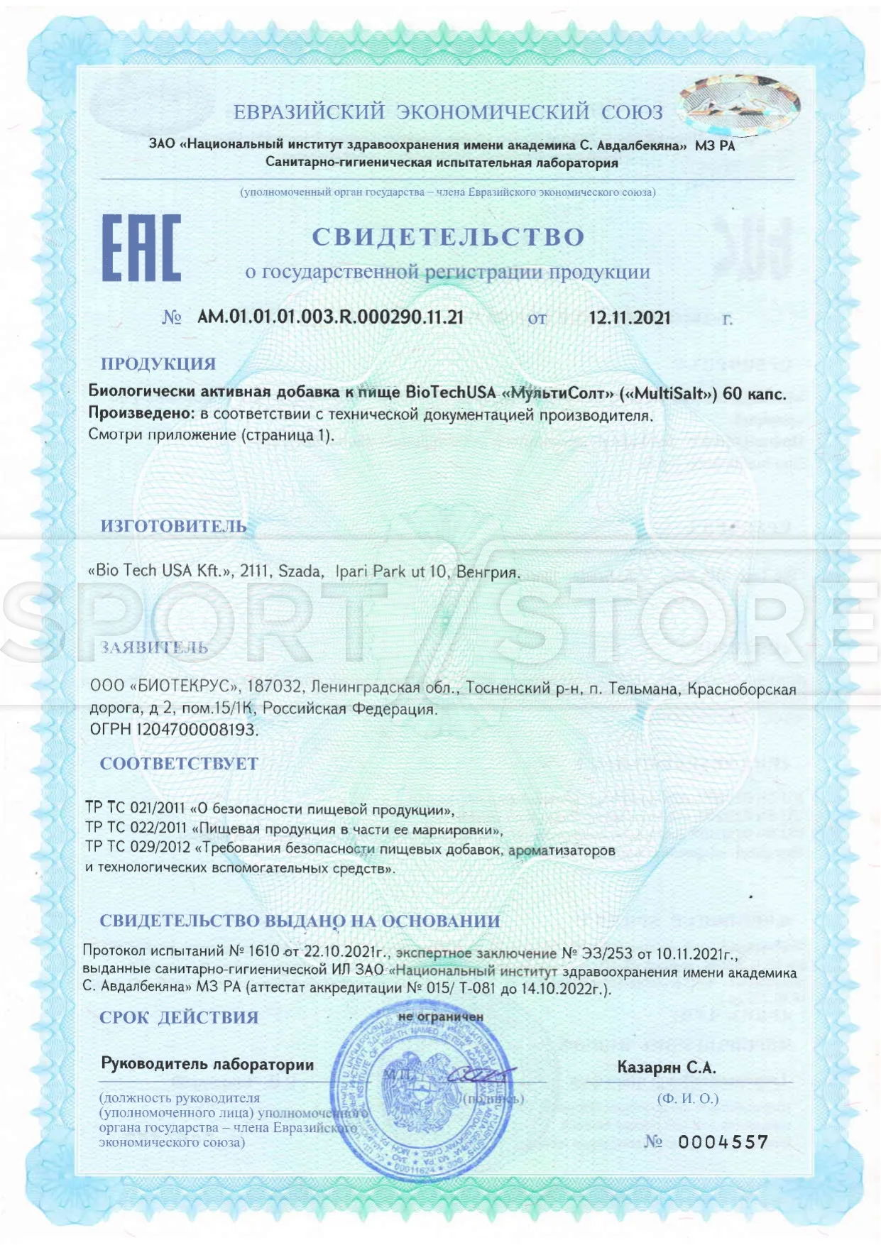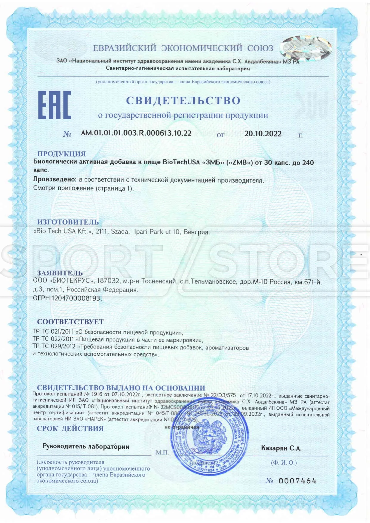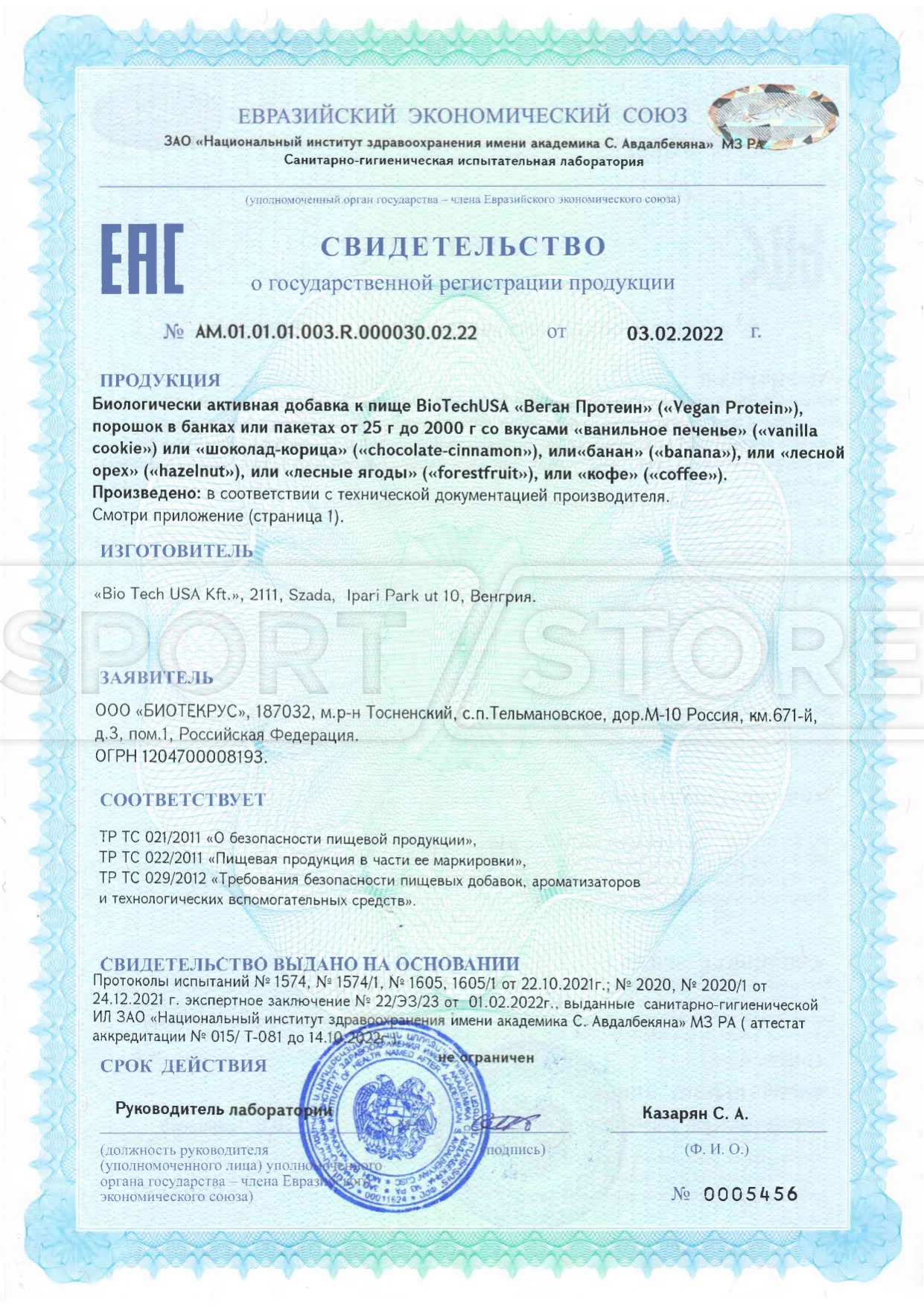 На продукцию BioTechUSA оформлены следующие документы: