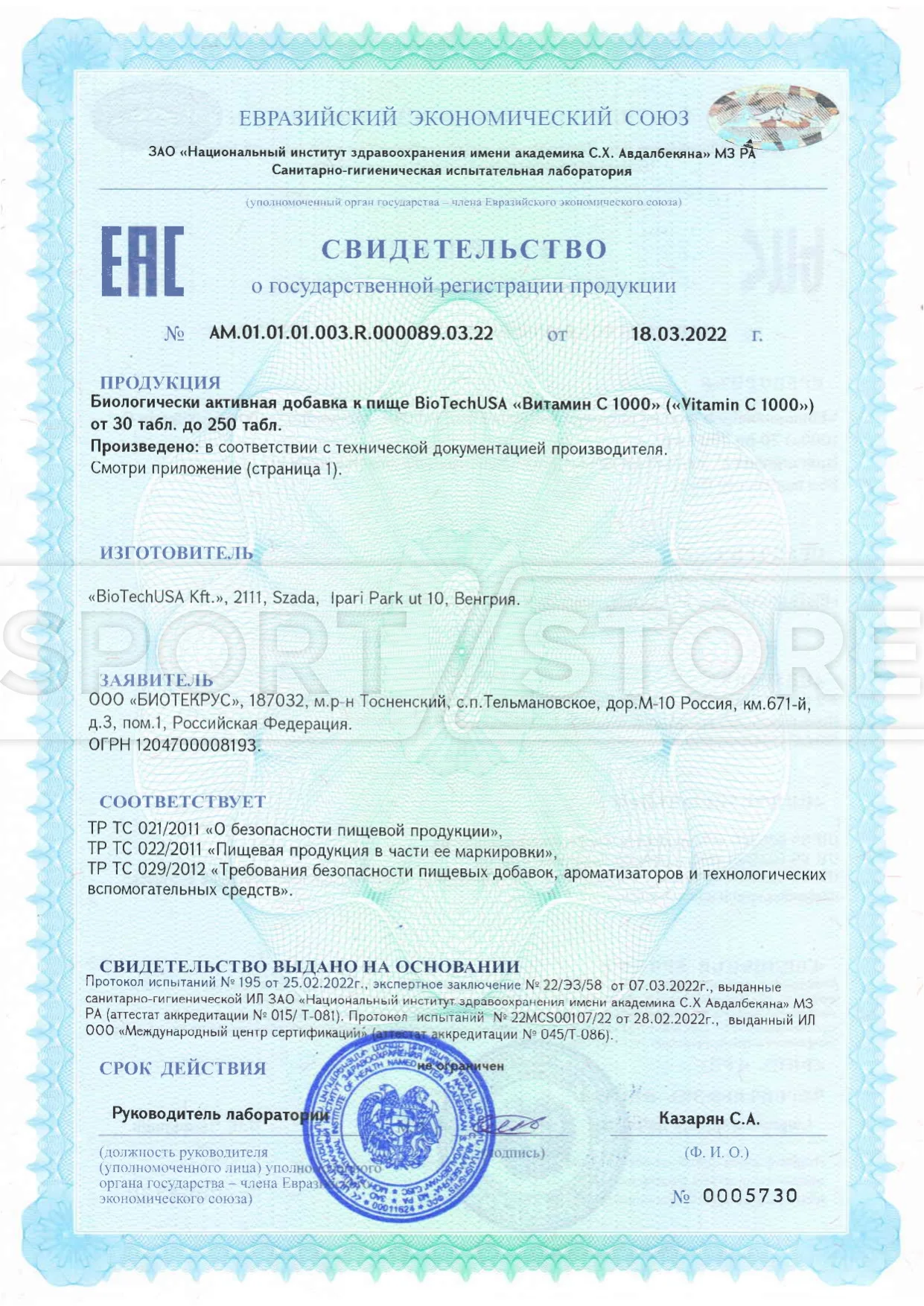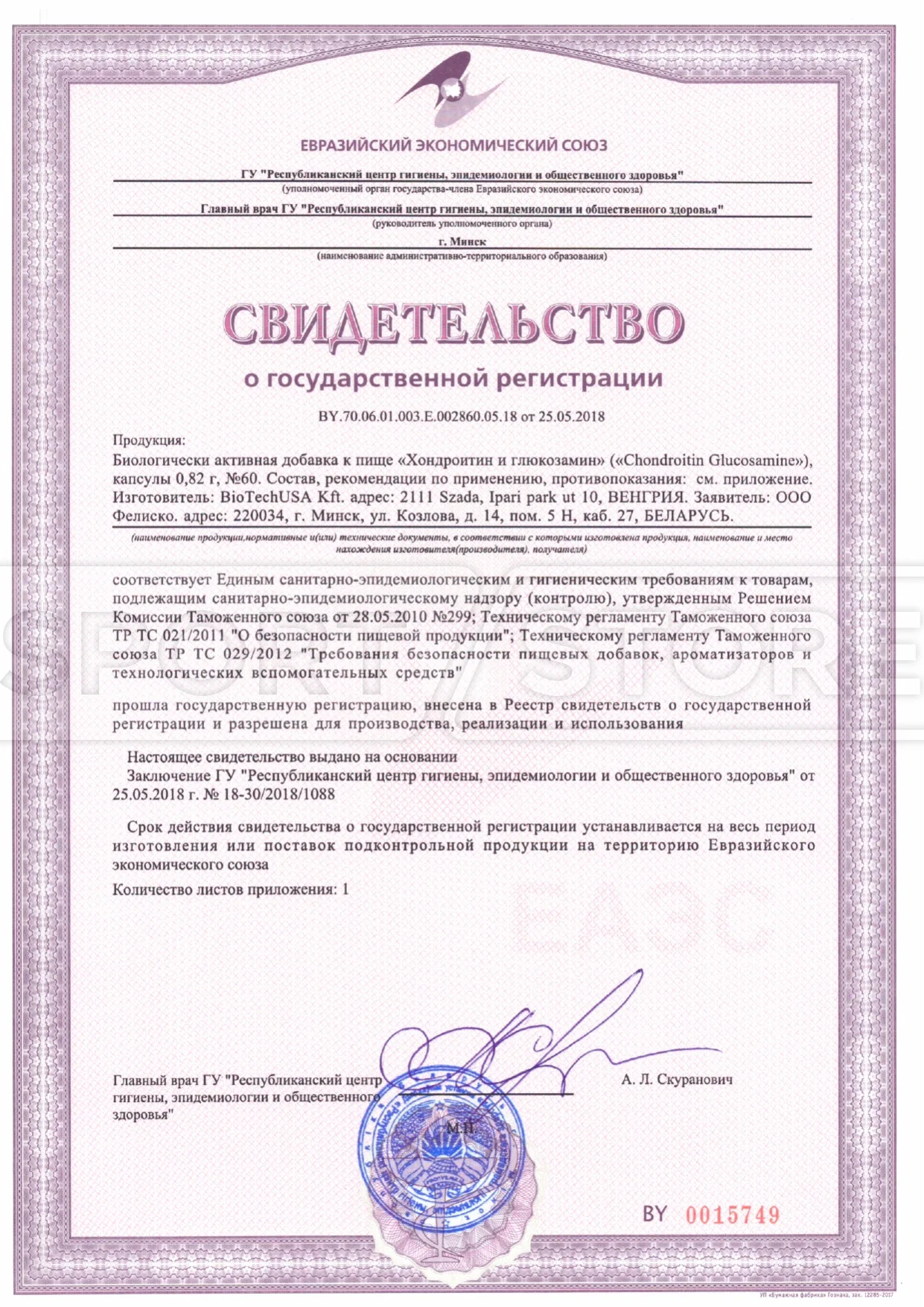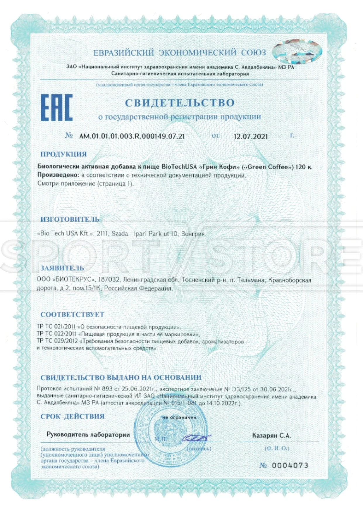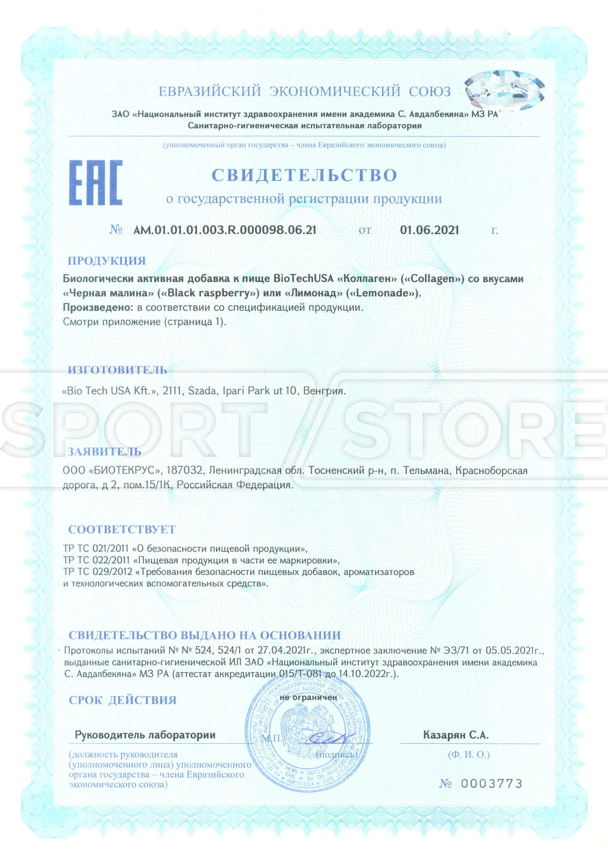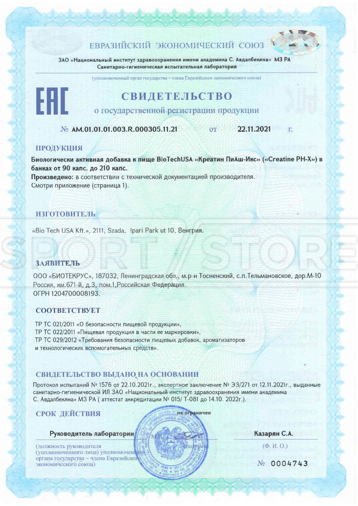 На продукцию BioTechUSA оформлены следующие документы: