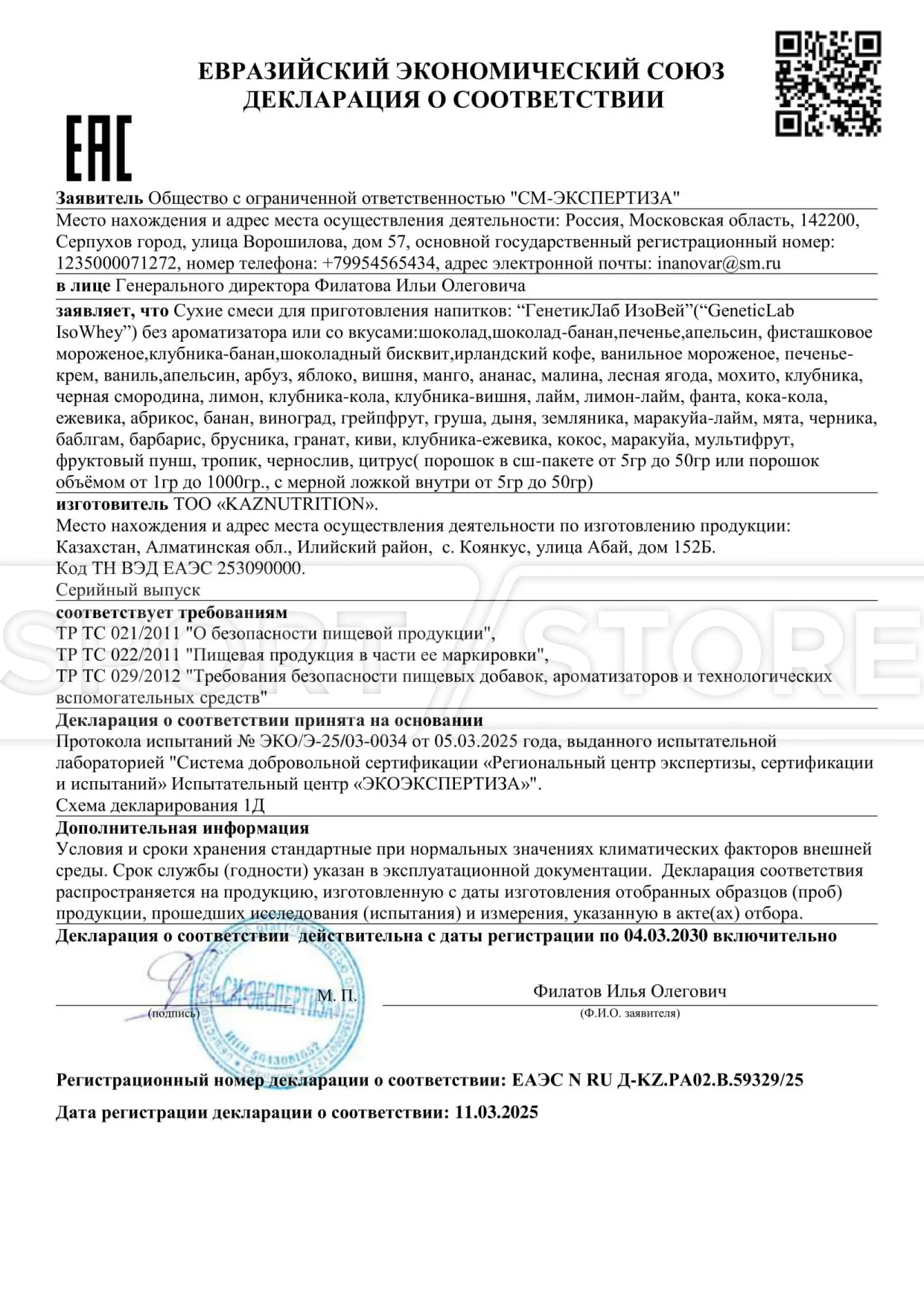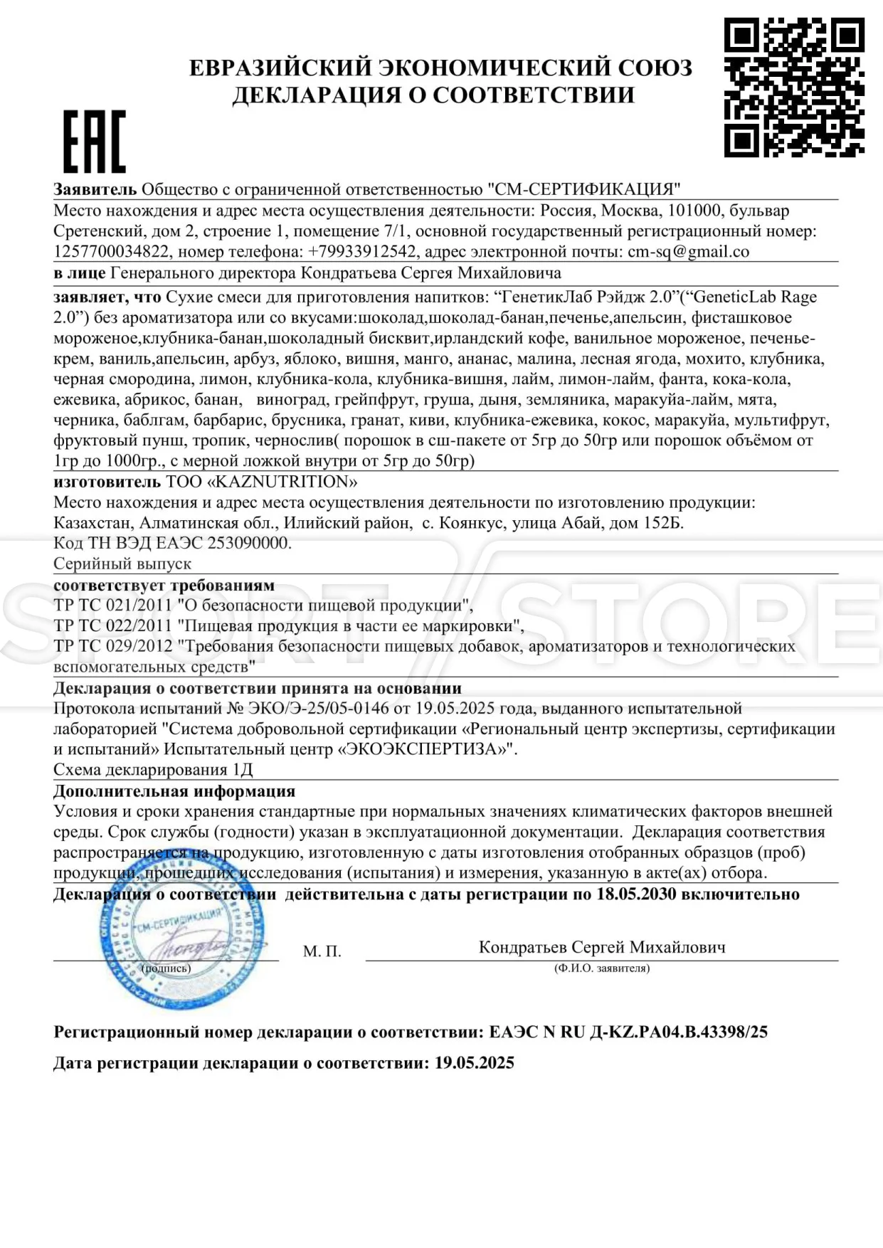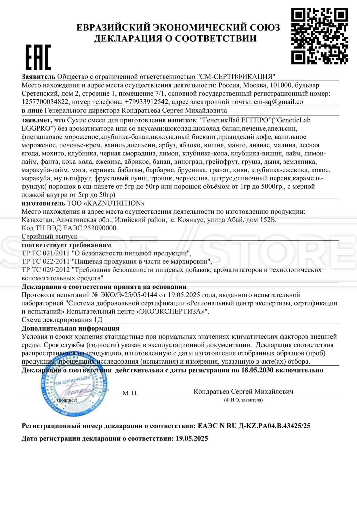 Каждый документ выдается на конкретную группу товаров: протеины, аминокислоты, гейнеры, витамины и другие БАДы.