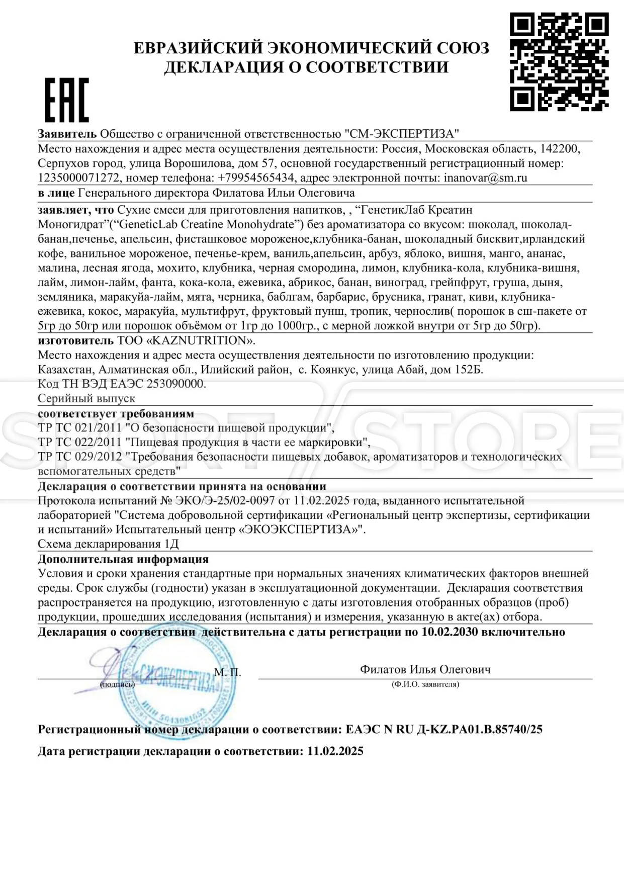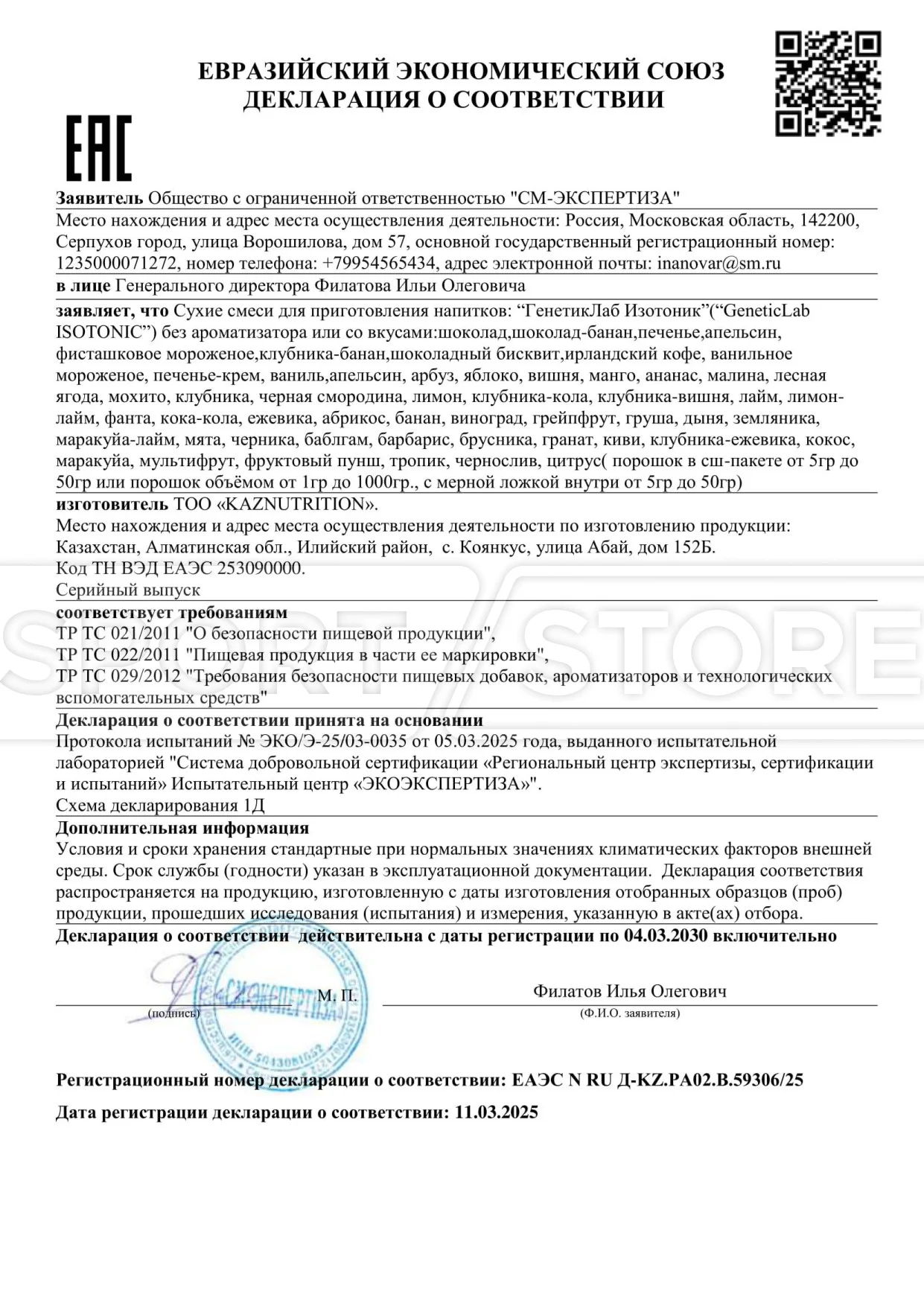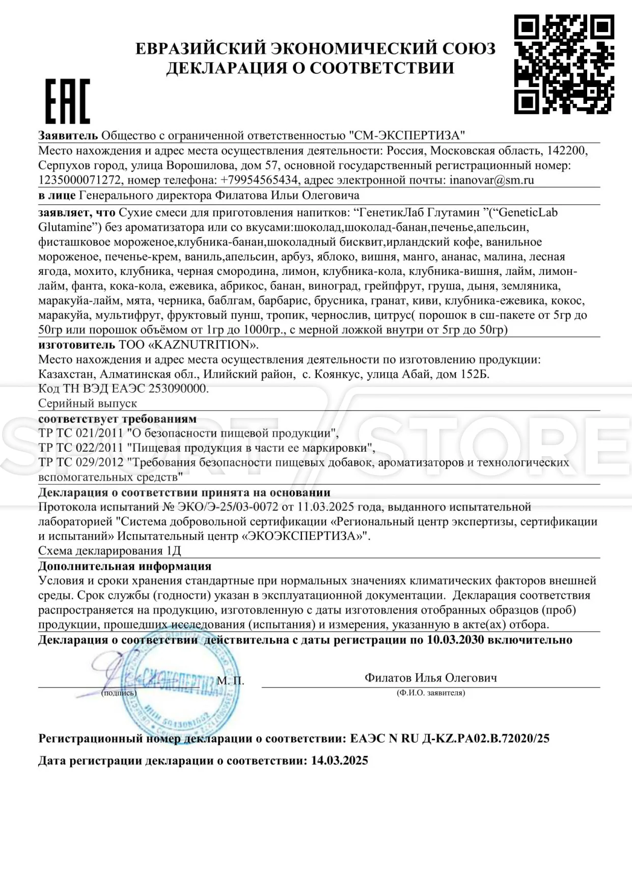 Каждый документ выдается на конкретную группу товаров: протеины, аминокислоты, гейнеры, витамины и другие БАДы.