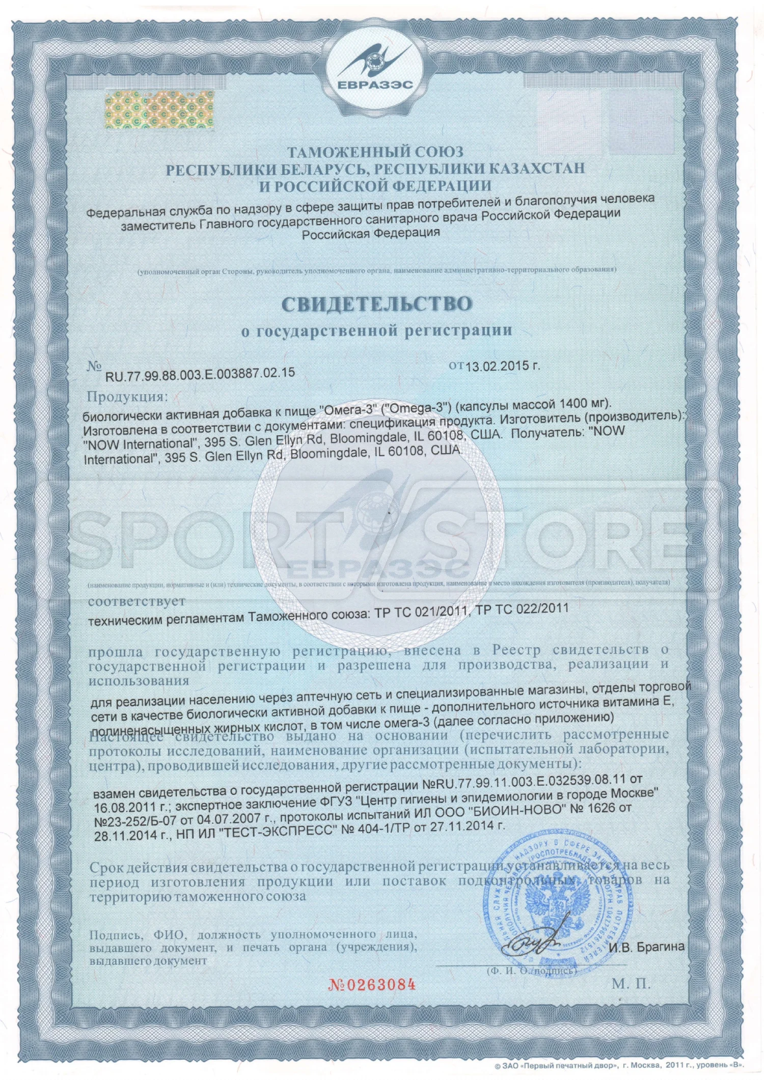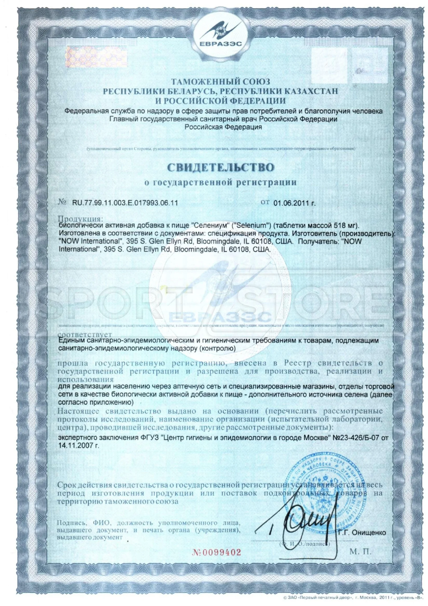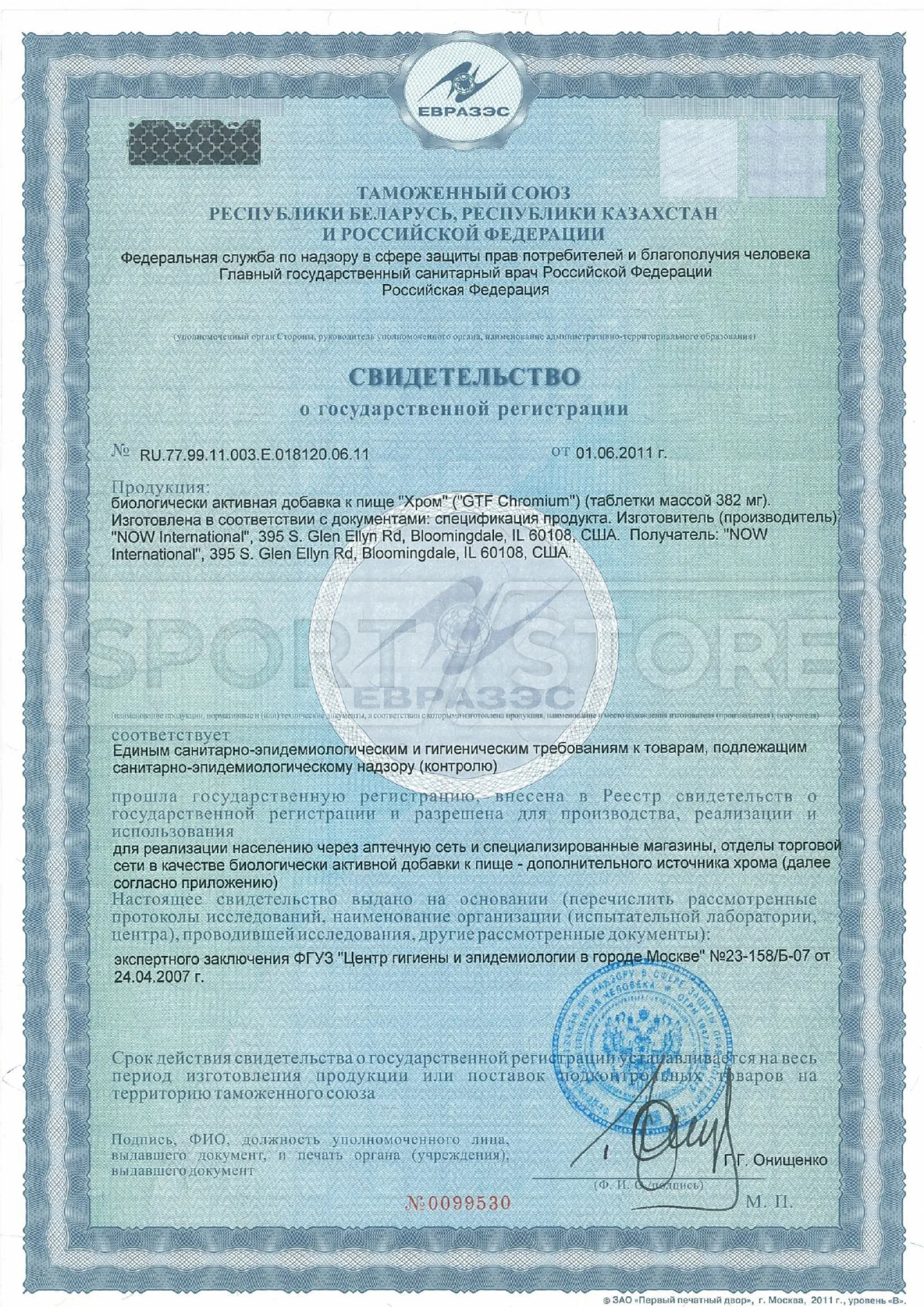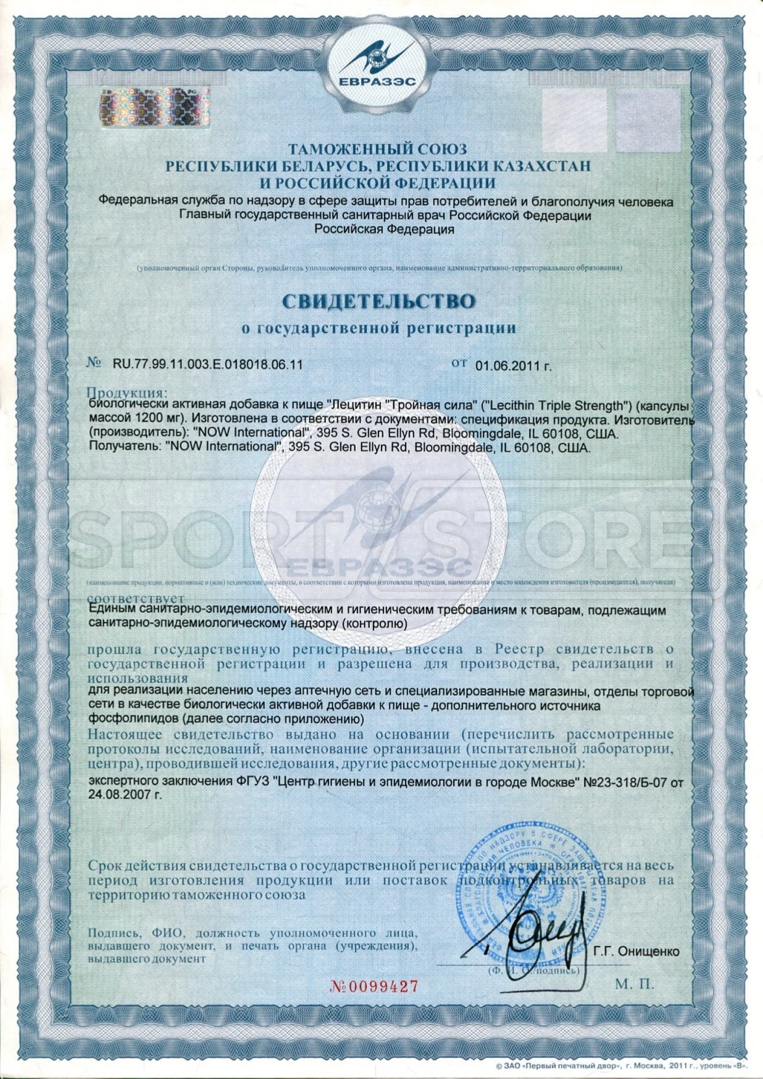 Весь ассортимент NOW поступает с полным комплектом следующих документов:
