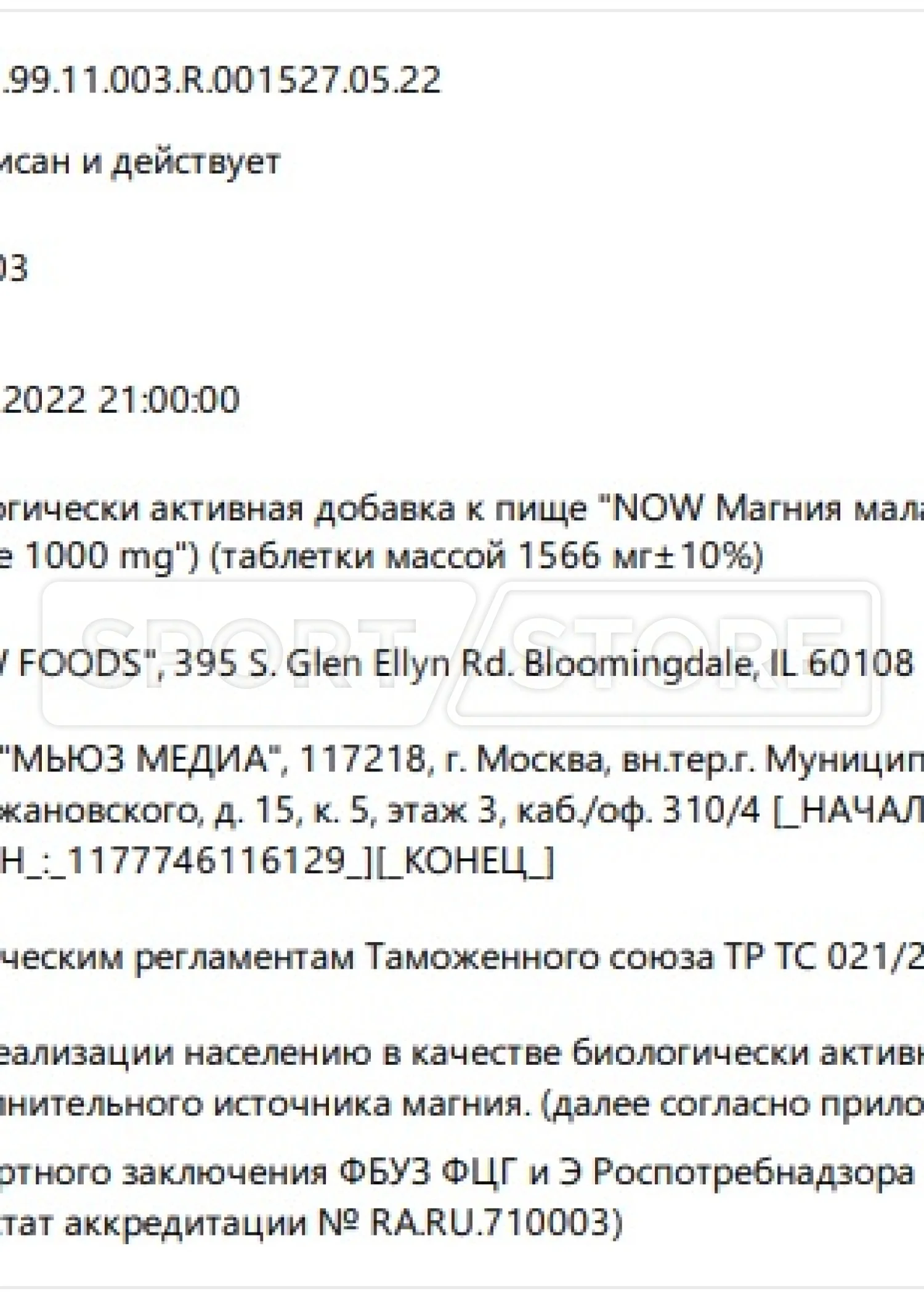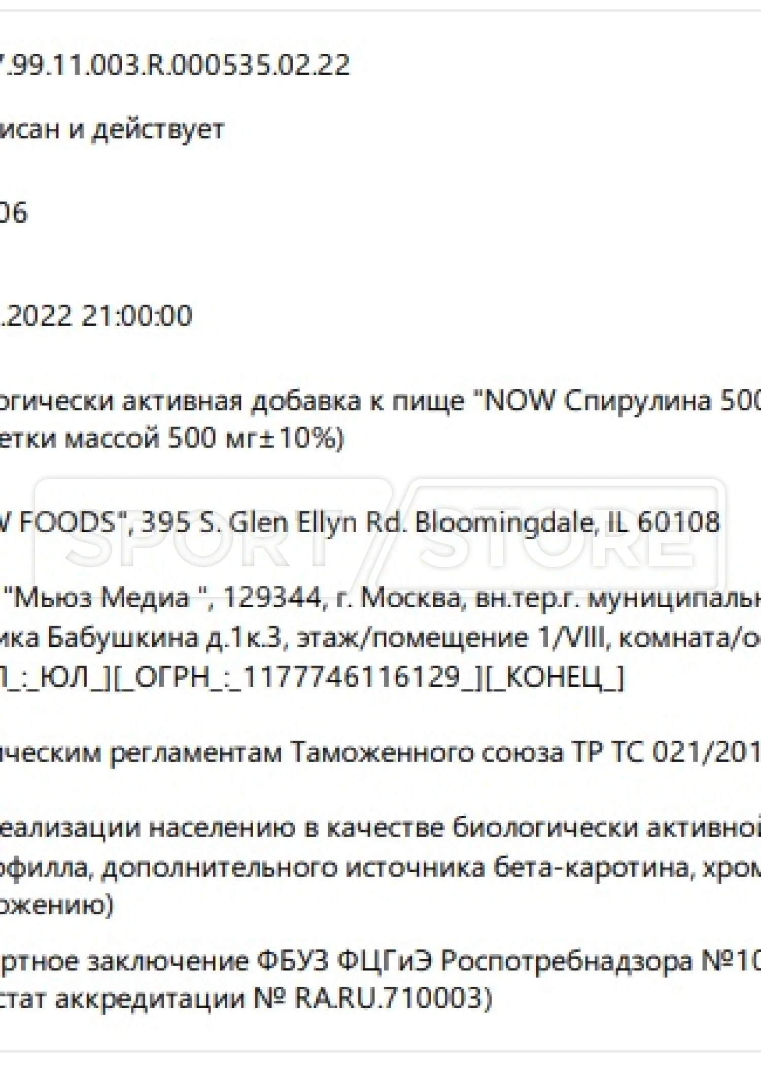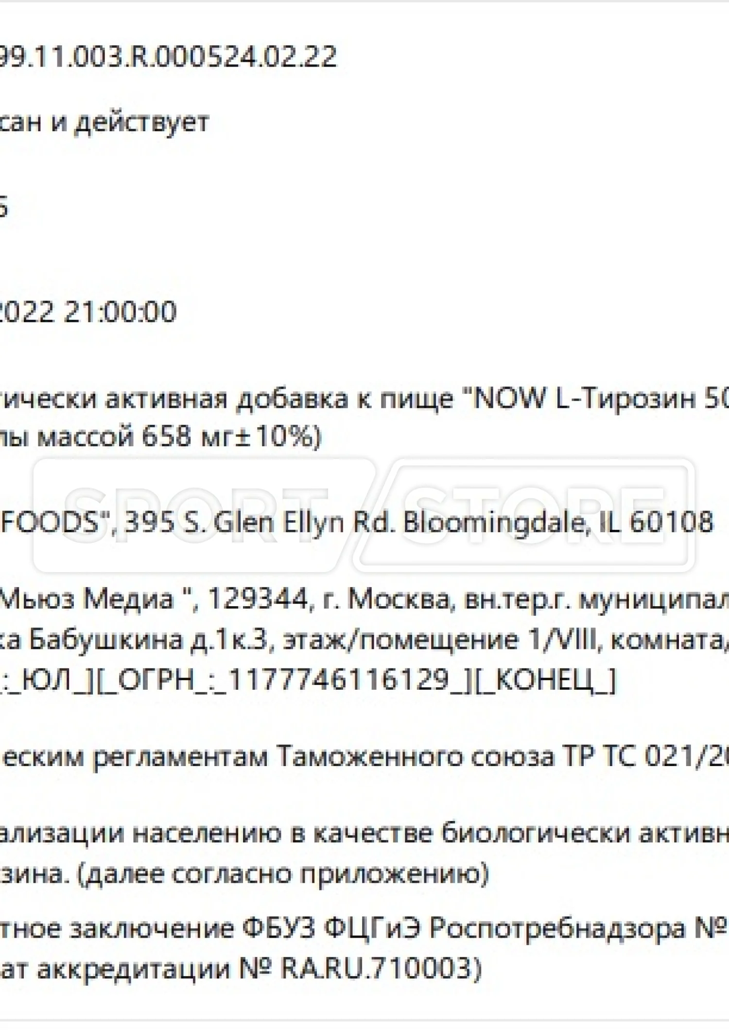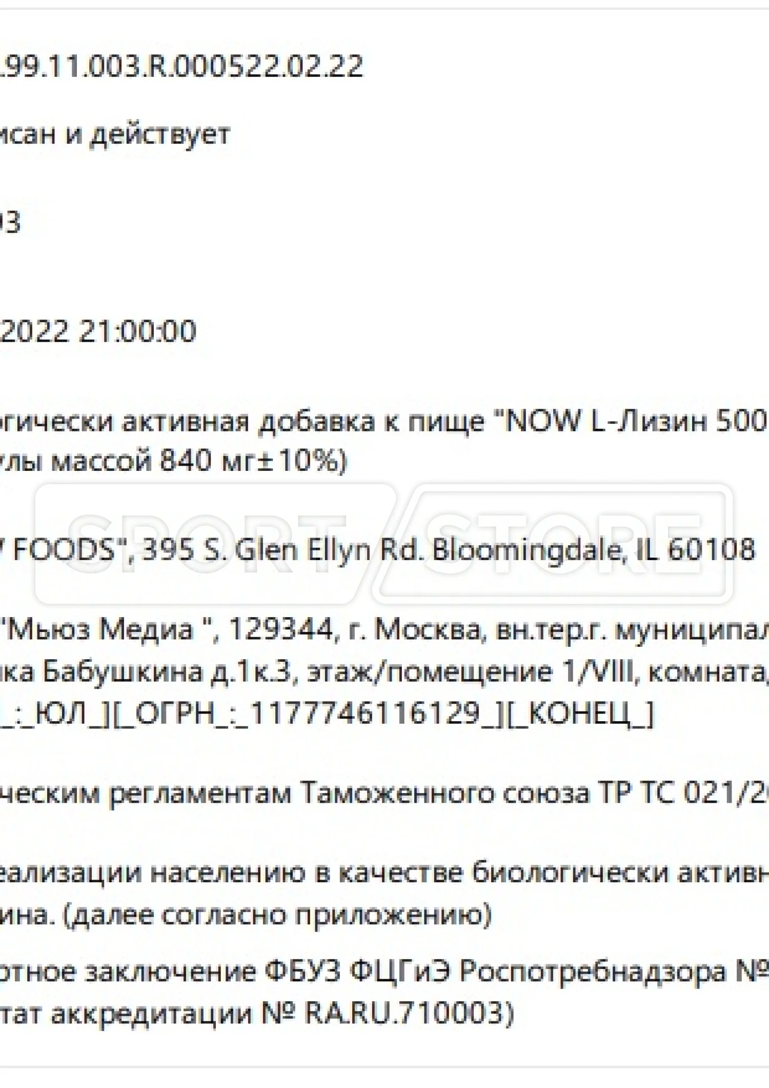 Весь ассортимент NOW поступает с полным комплектом следующих документов: