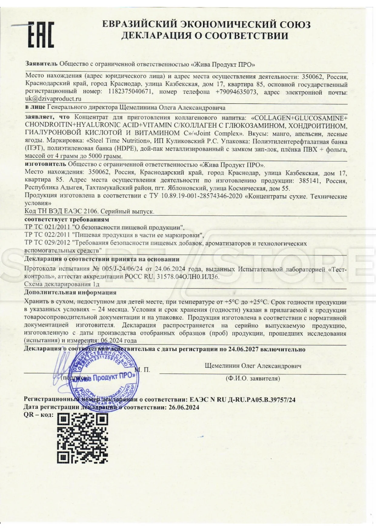 Для продукции Steeltime Nutrition доступны следующие сертификаты и документы: