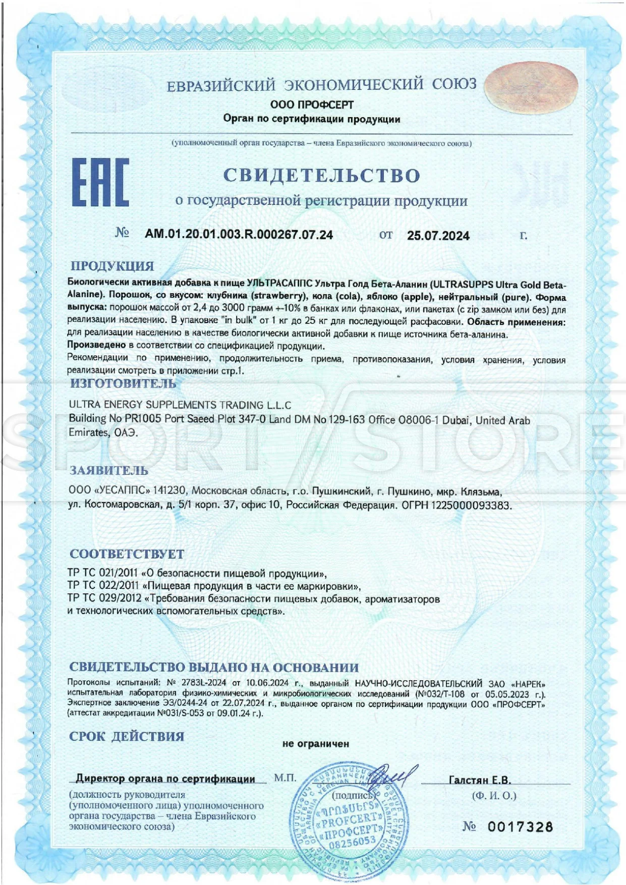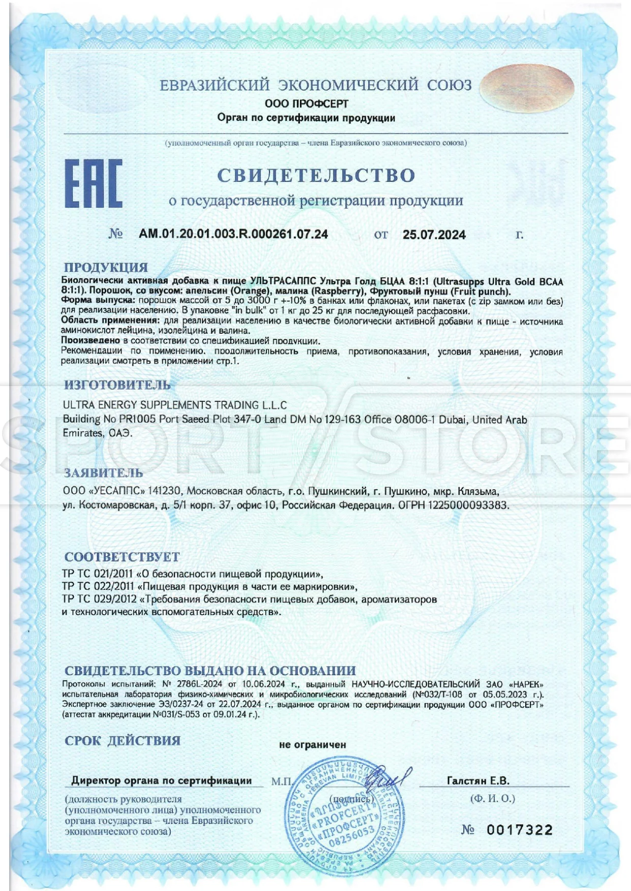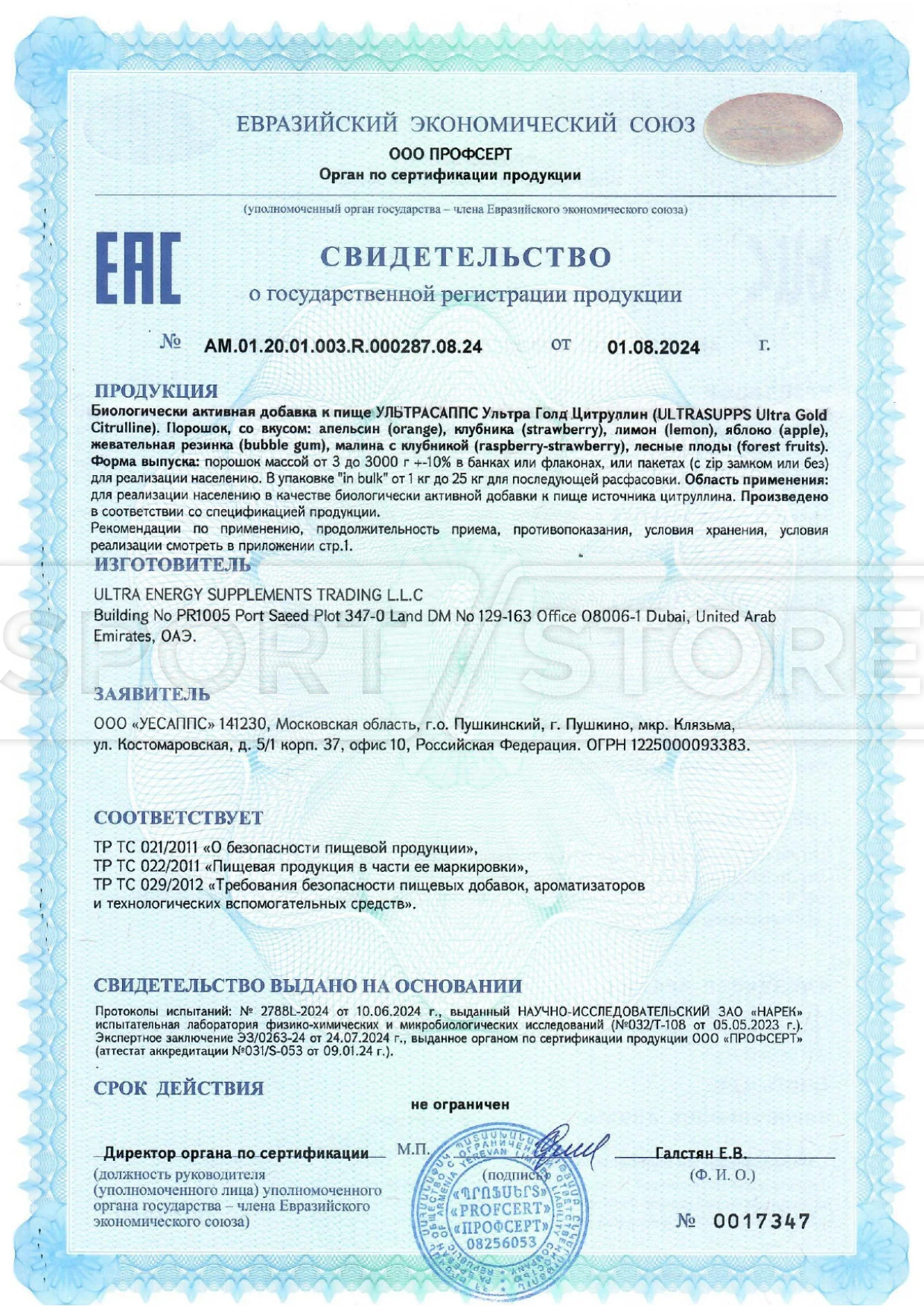 Какие документы сопровождают продукцию Ultrasupps?