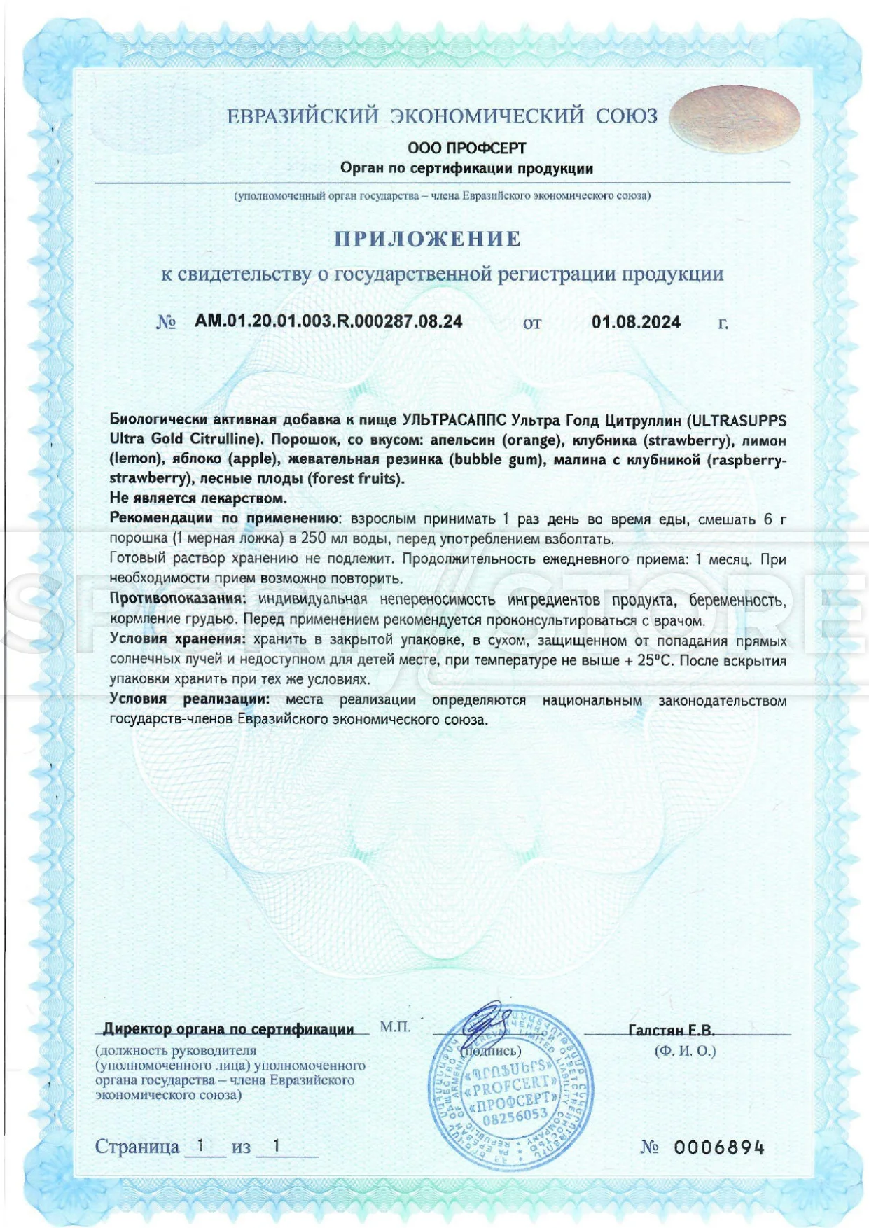 На этой странице размещены официальные копии сертификатов качества продукции Ultrasupps, полученные от производителя и официальных дистрибьюторов.